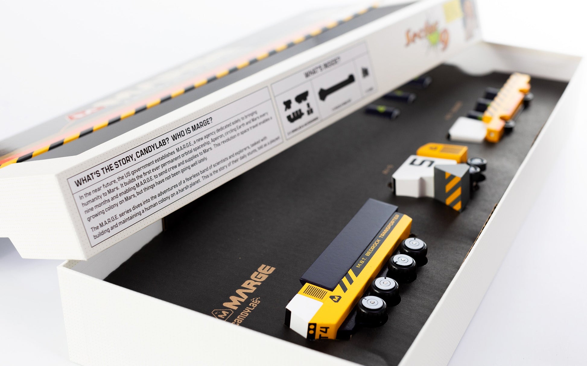 The Sector 9 play set includes the powerful and essential building vehicles of the MARGE team.