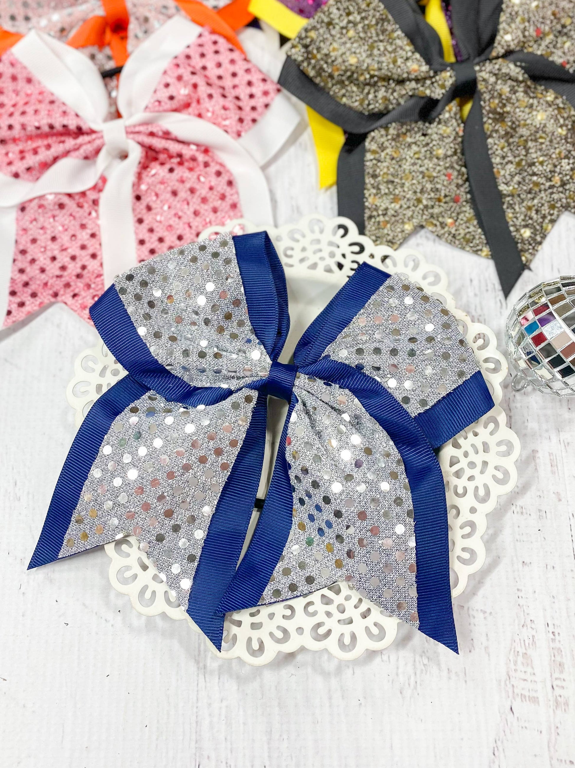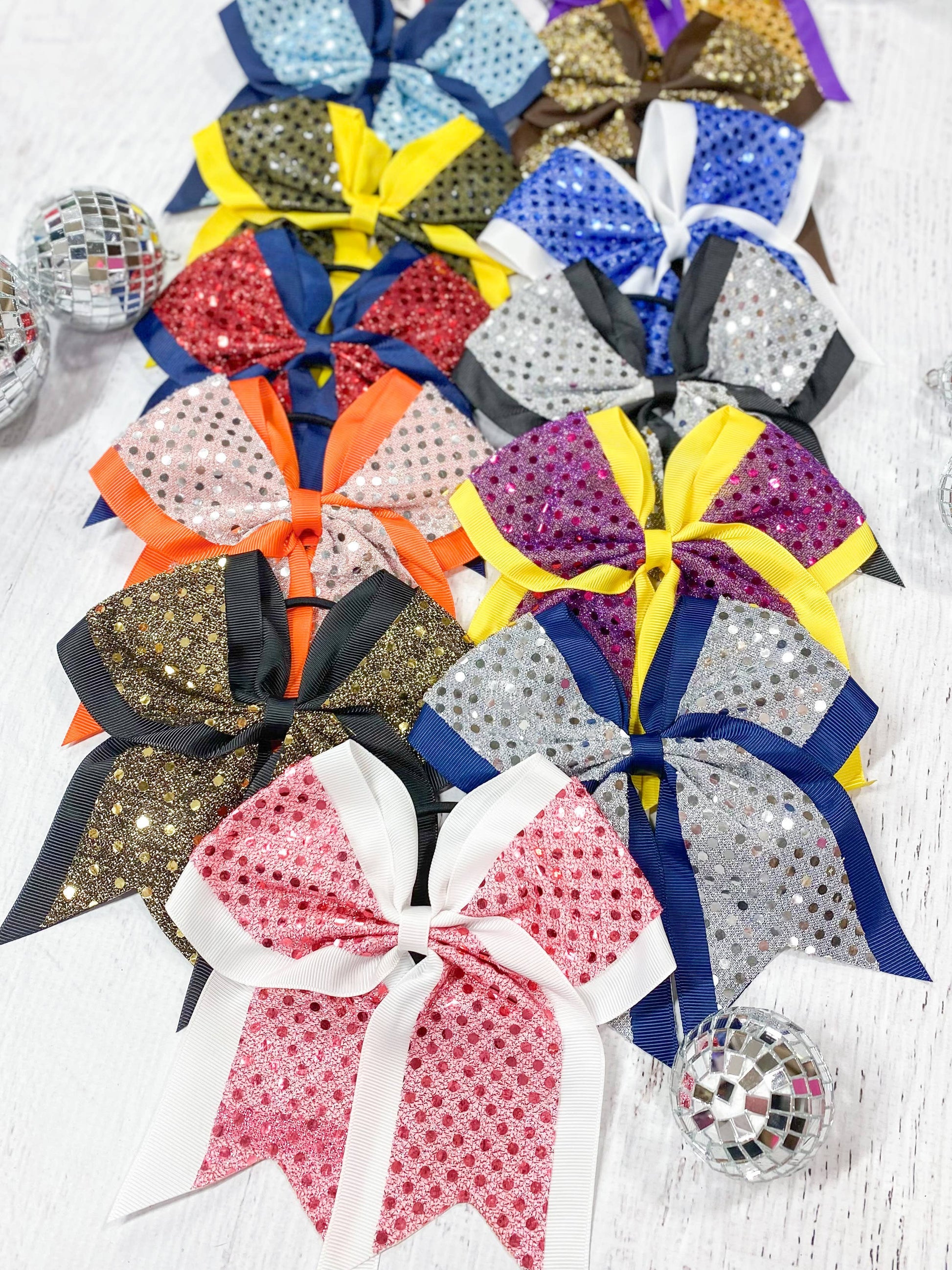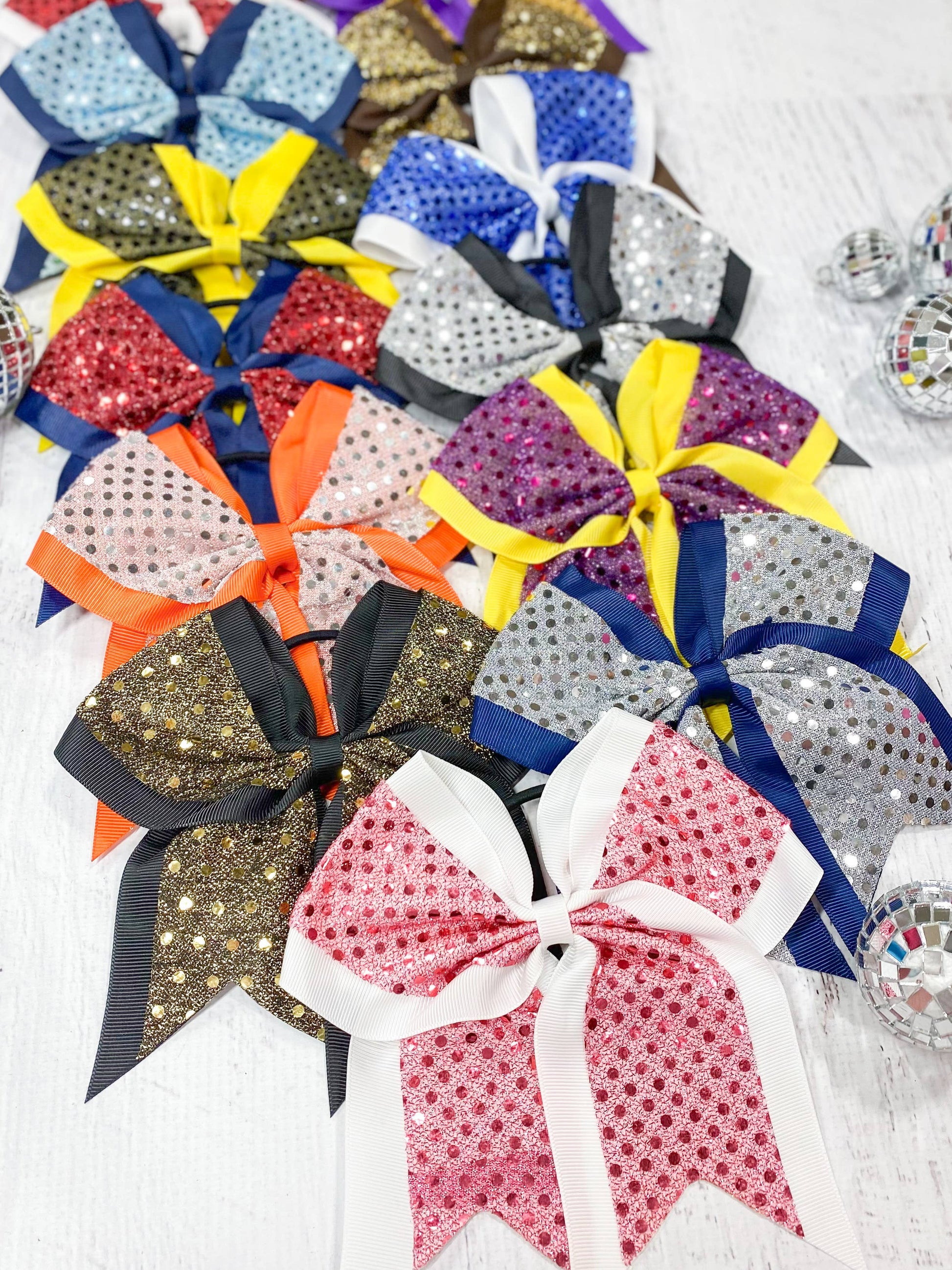 Get ready to shine with our Sequin School Spirit Cheer Bow! Featuring a fun and eye-catching design, this bow will definitely show off your team spirit. Perfect for pep rallies, games, and everyday wear, our bow will add a touch of sparkle to any outfit. Go team!