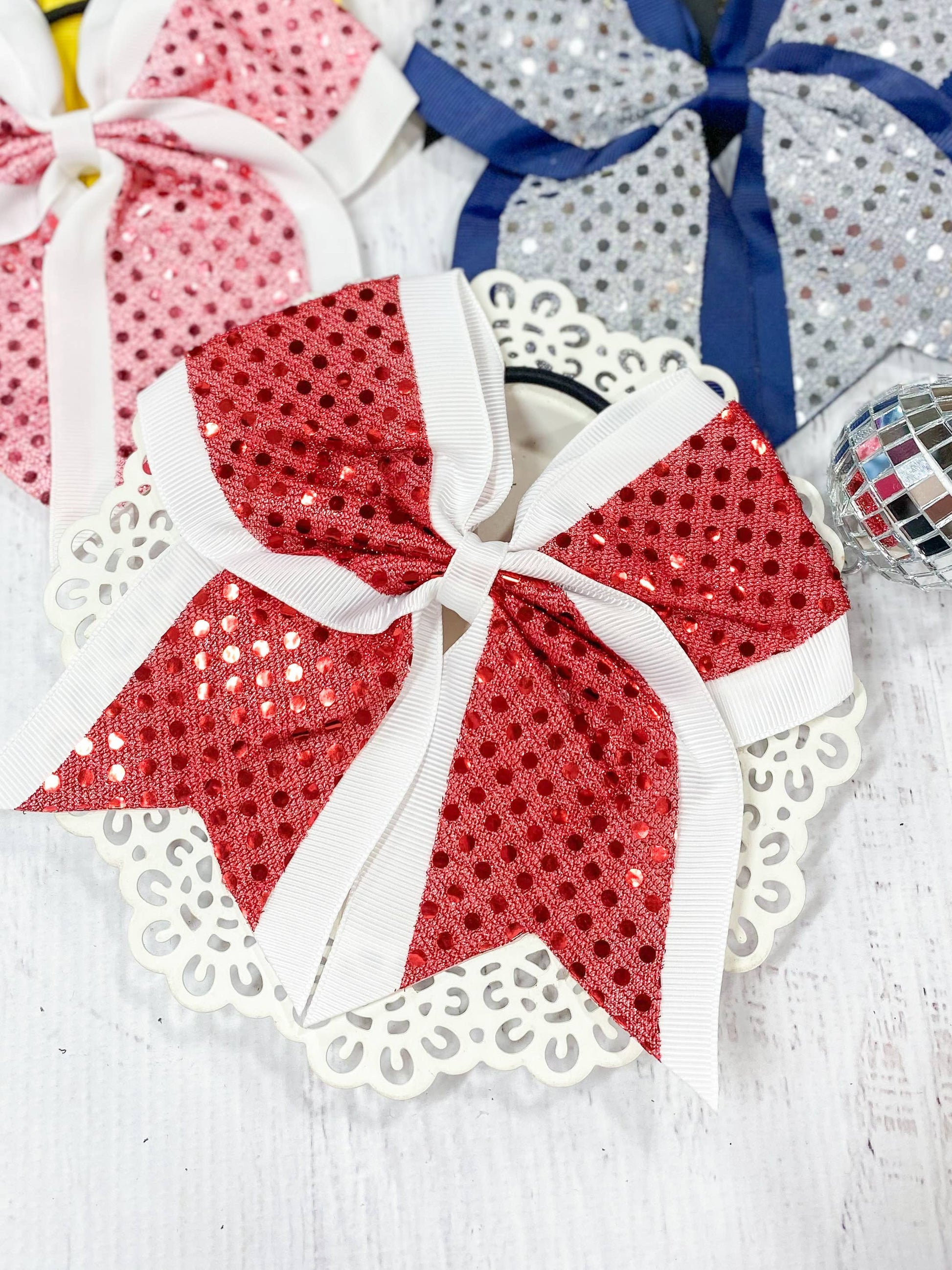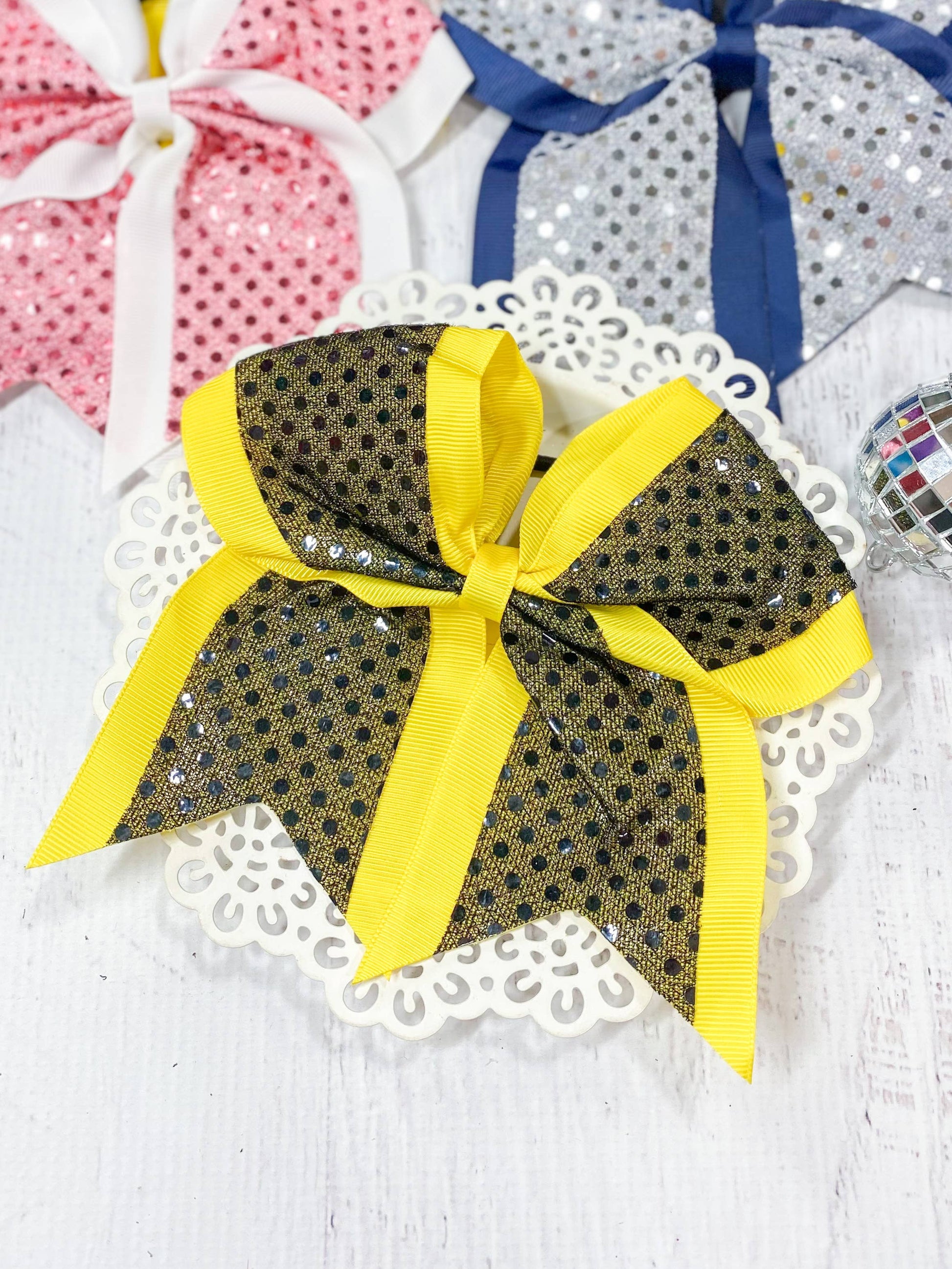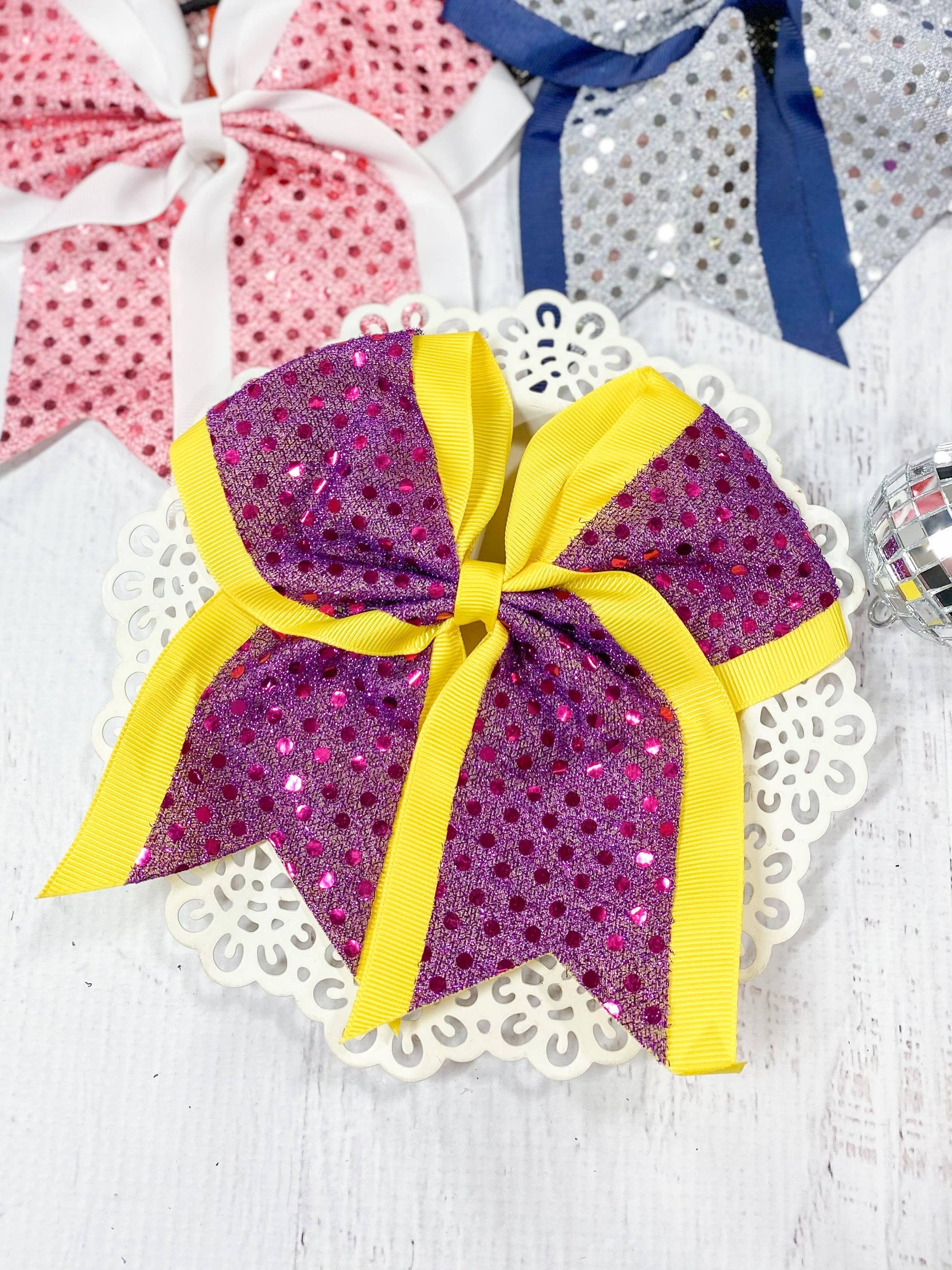 Get ready to shine with our Sequin School Spirit Cheer Bow! Featuring a fun and eye-catching design, this bow will definitely show off your team spirit. Perfect for pep rallies, games, and everyday wear, our bow will add a touch of sparkle to any outfit. Go team!
