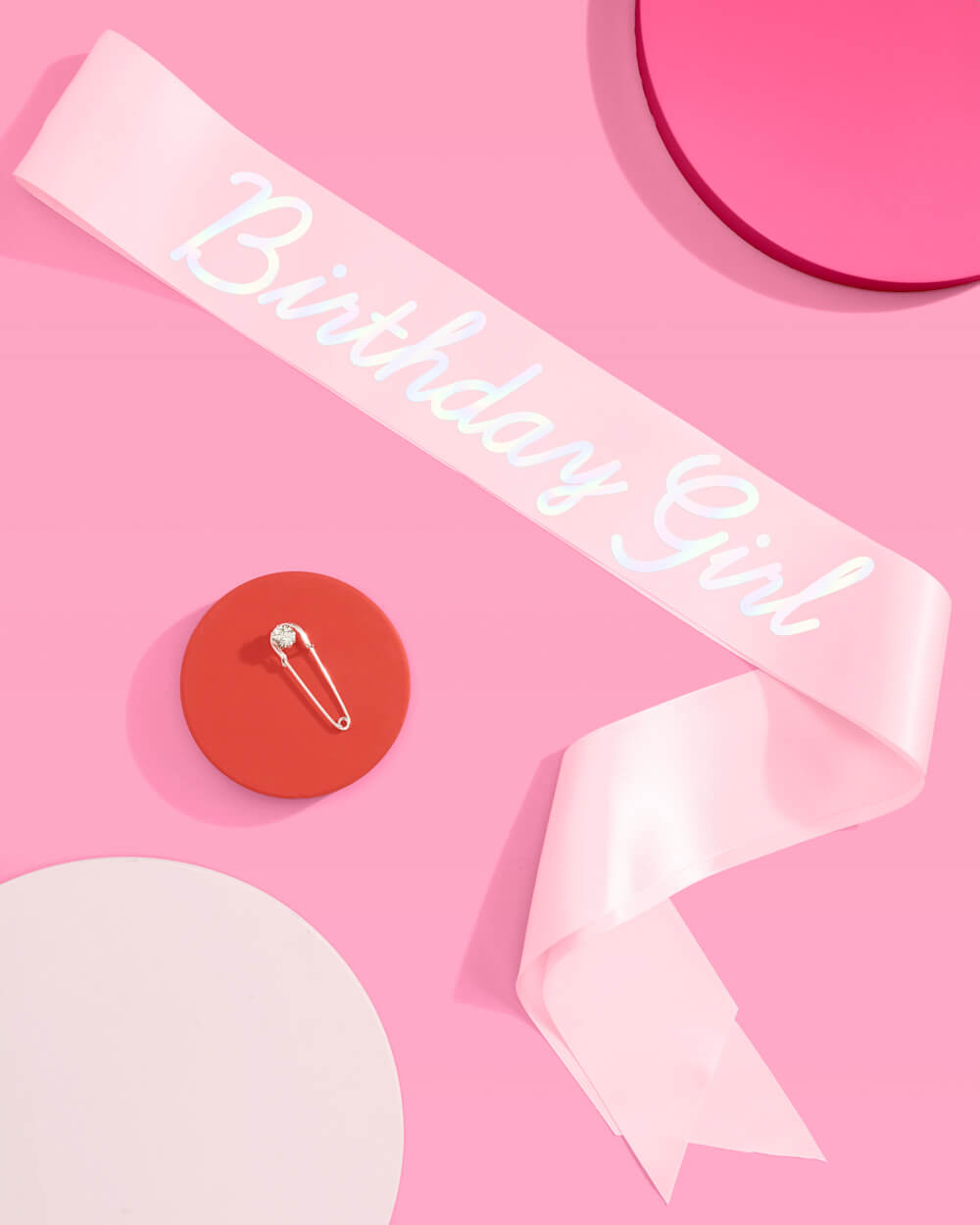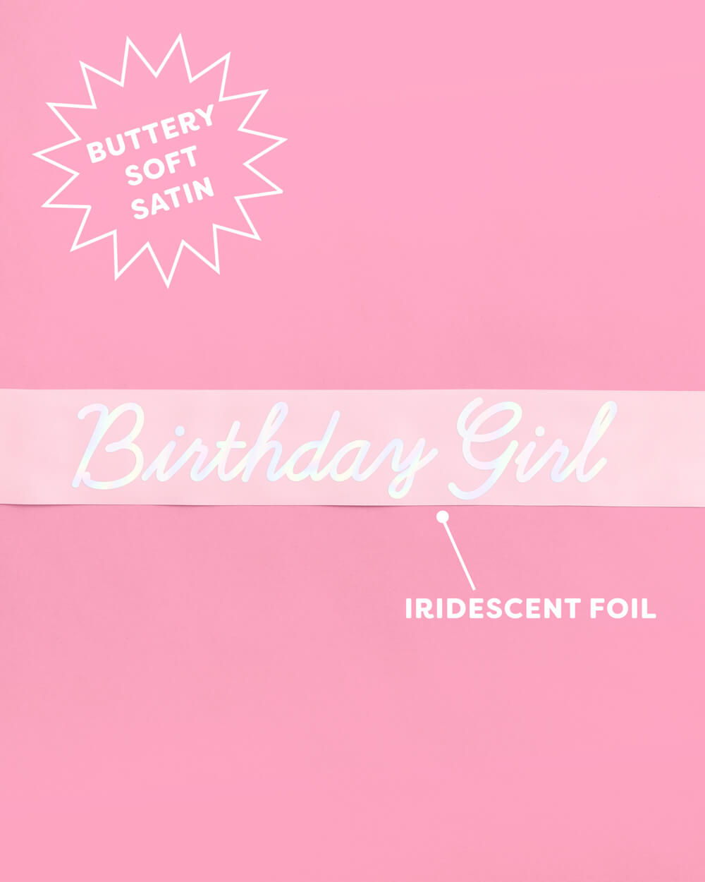 Shimmer Bday Girl Sash - pink and iridescent foil
