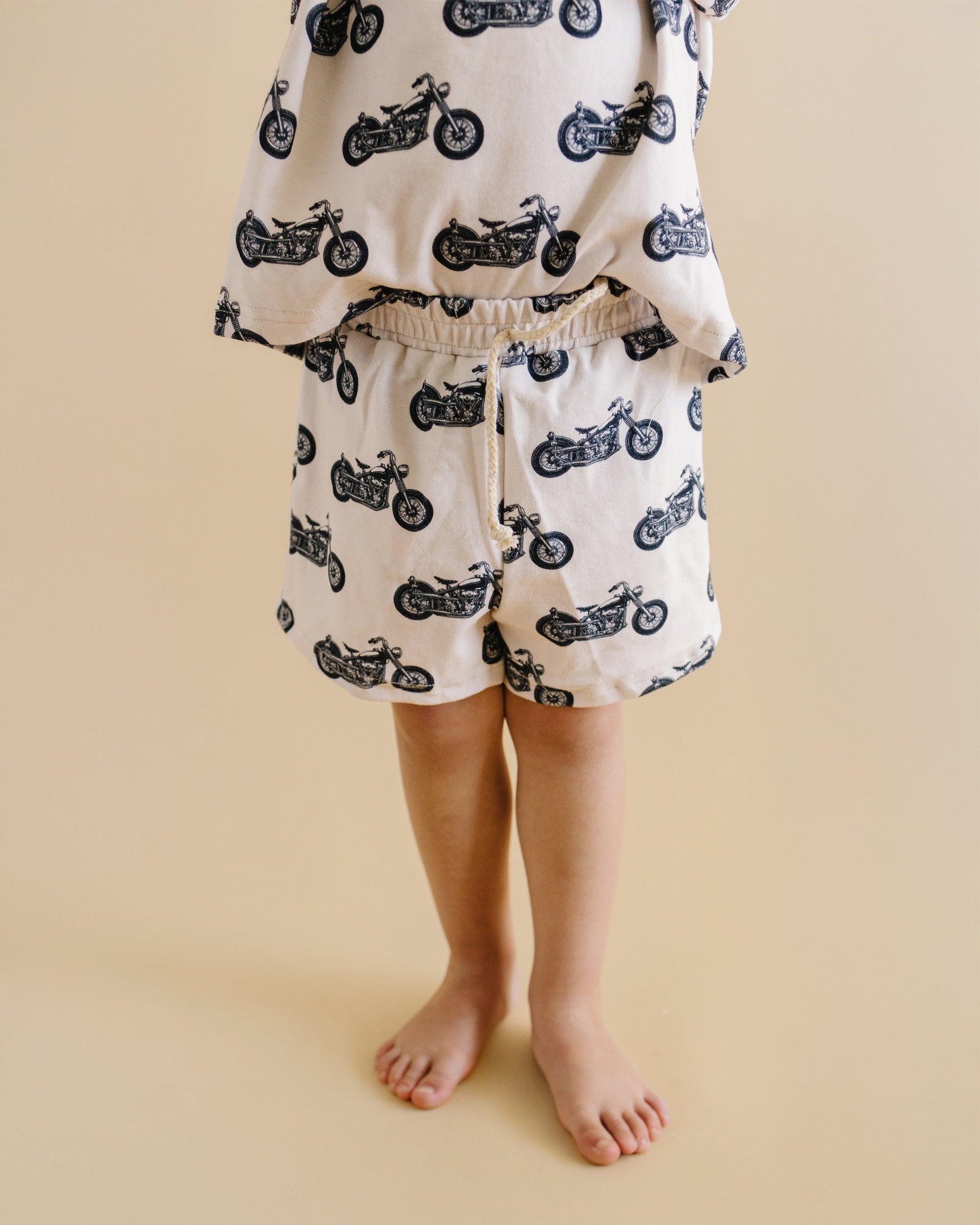 For the adventurous spirit, our Born to Ride shorts set is the perfect match! Featuring a cool motorcycle print, this set is designed for those who love a little edge in their style. Soft, breathable, and made for active days, this set will keep them comfortable while showing off their bold personality.