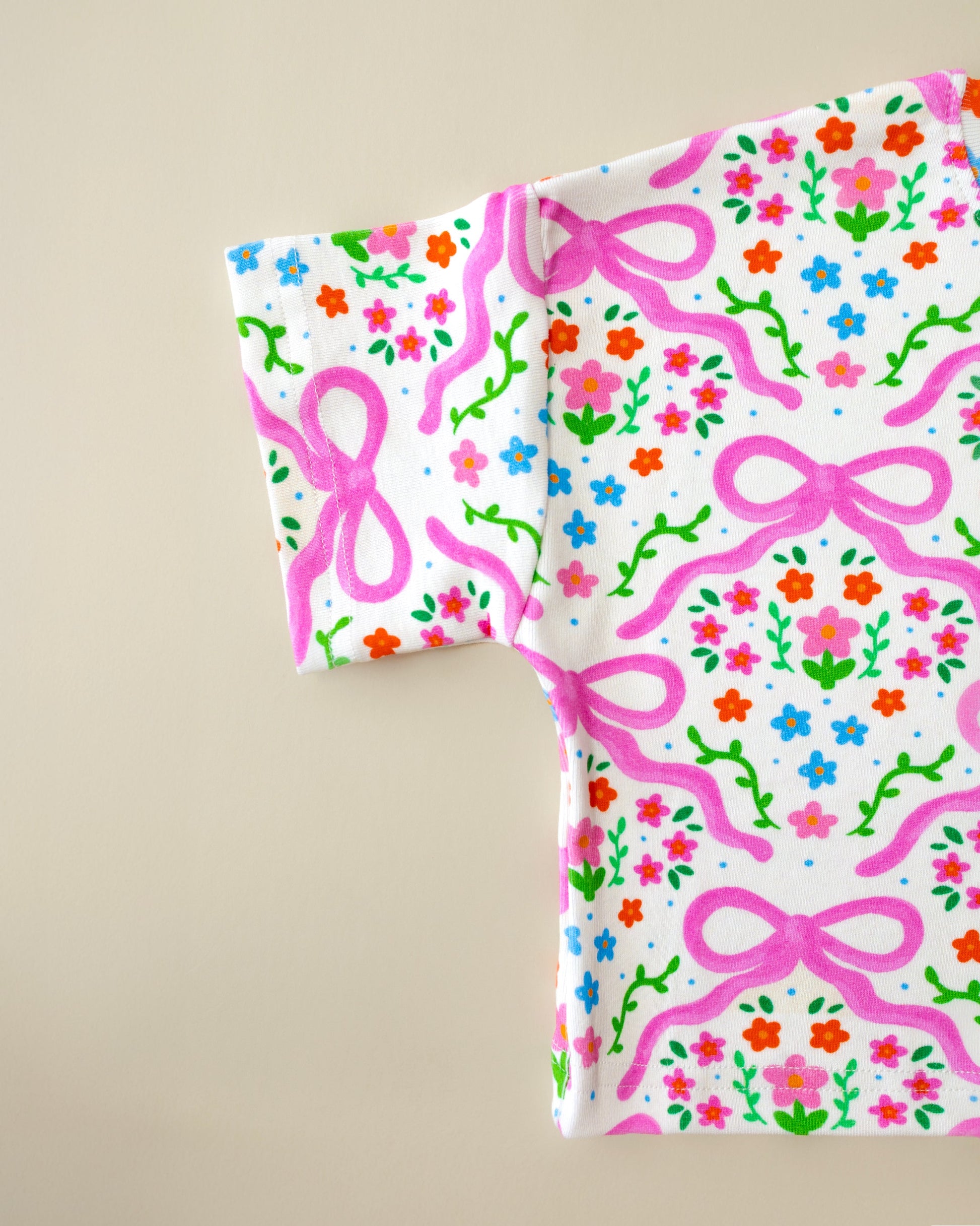 With its muted pastel tones and vintage-inspired floral print, this two-piece set is made for slow mornings, sunny playdates, and picture-perfect moments. Crafted from breathable cotton with a comfortable stretch, it's as cozy as it is cute.