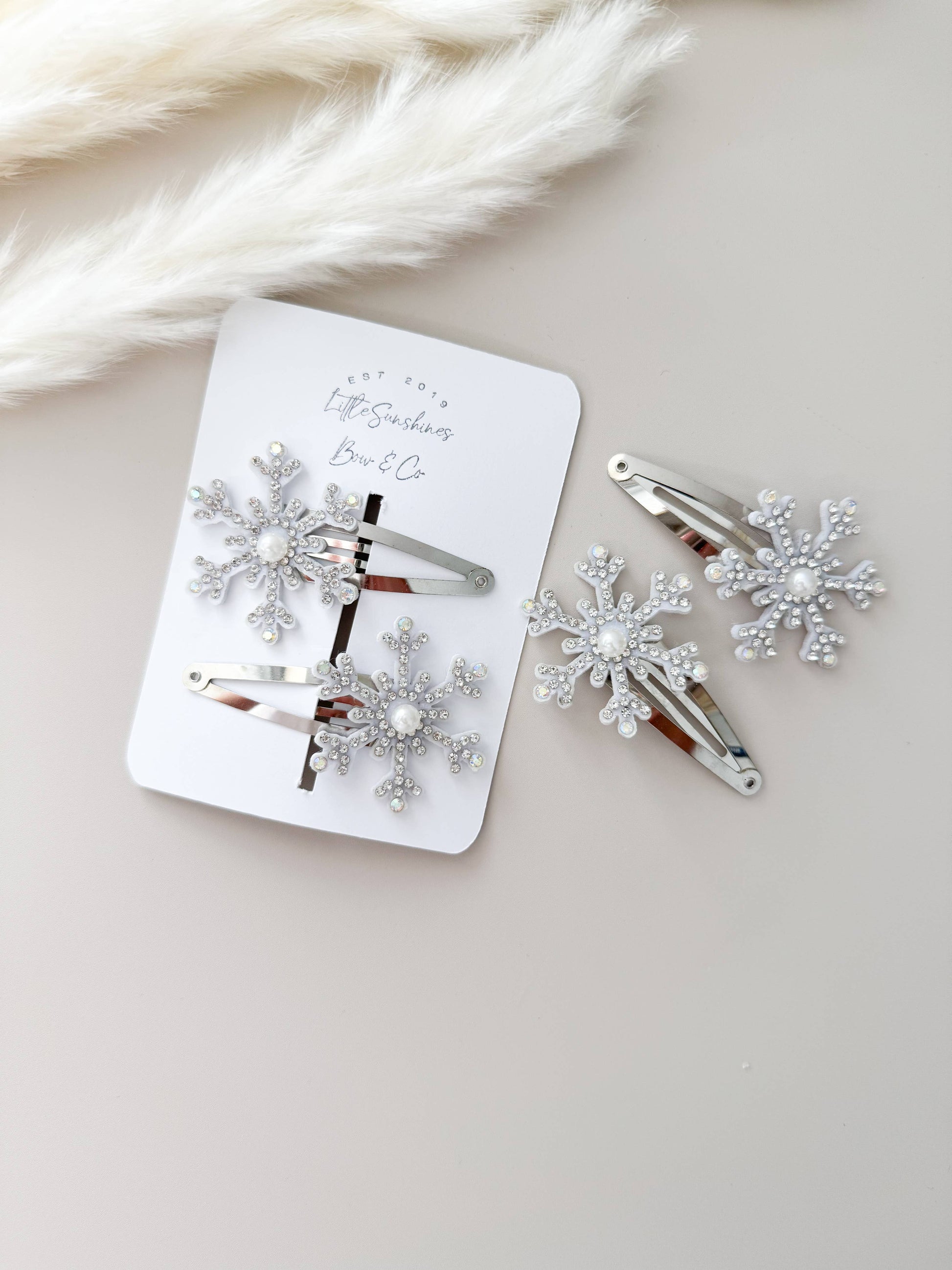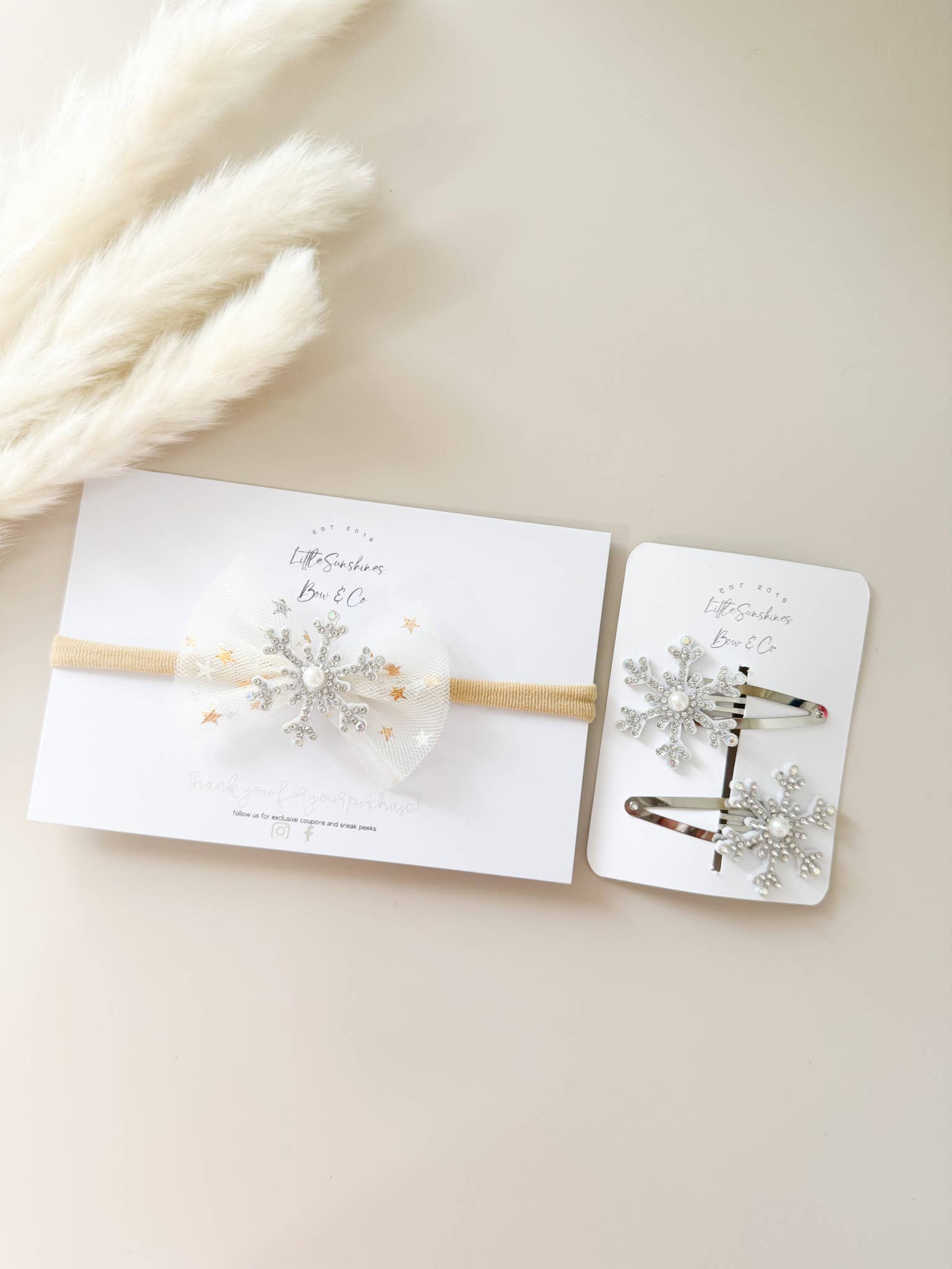 Each clip & headband has a Silver Snowflake Embellishment attached