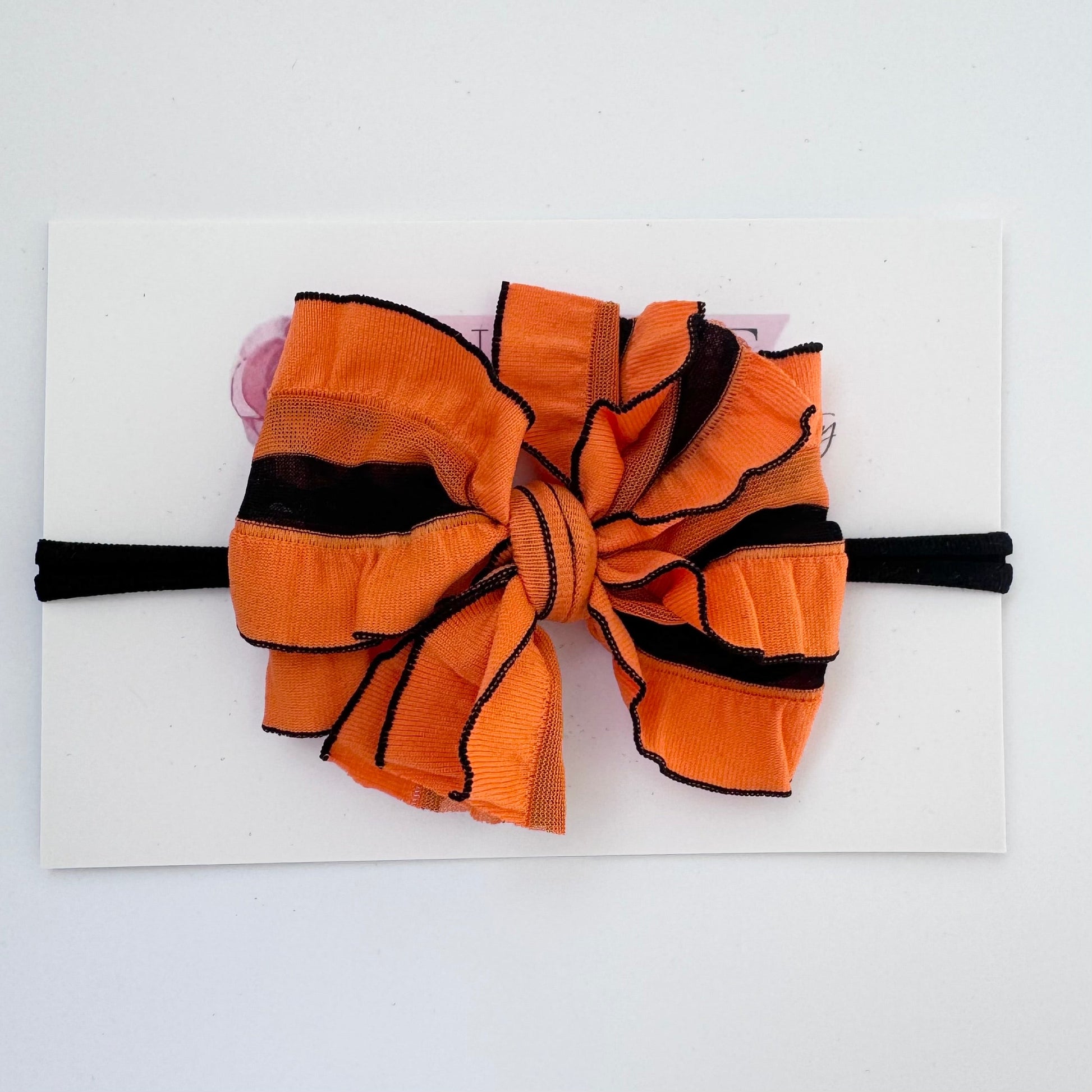 This 4-inch Ruffled Bow on Skinny Nylon Headband is not only a stylish accessory but also a practical choice for everyday wear. It adds a touch of elegance to any outfit, whether it's a cute onesie or a fancy dress. The versatility of this headband makes it suitable for various occasions, from casual outings to special events, ensuring your baby looks picture-perfect in.