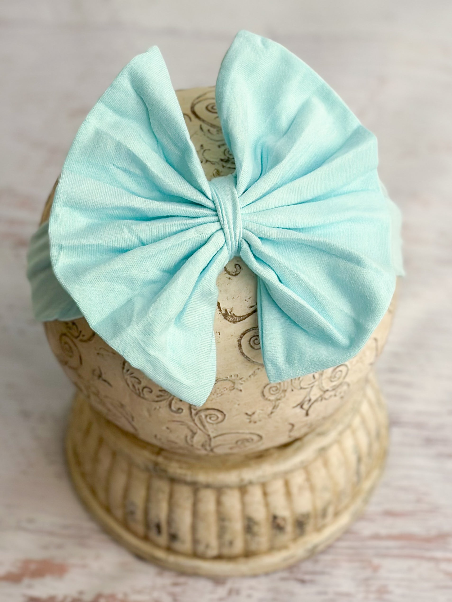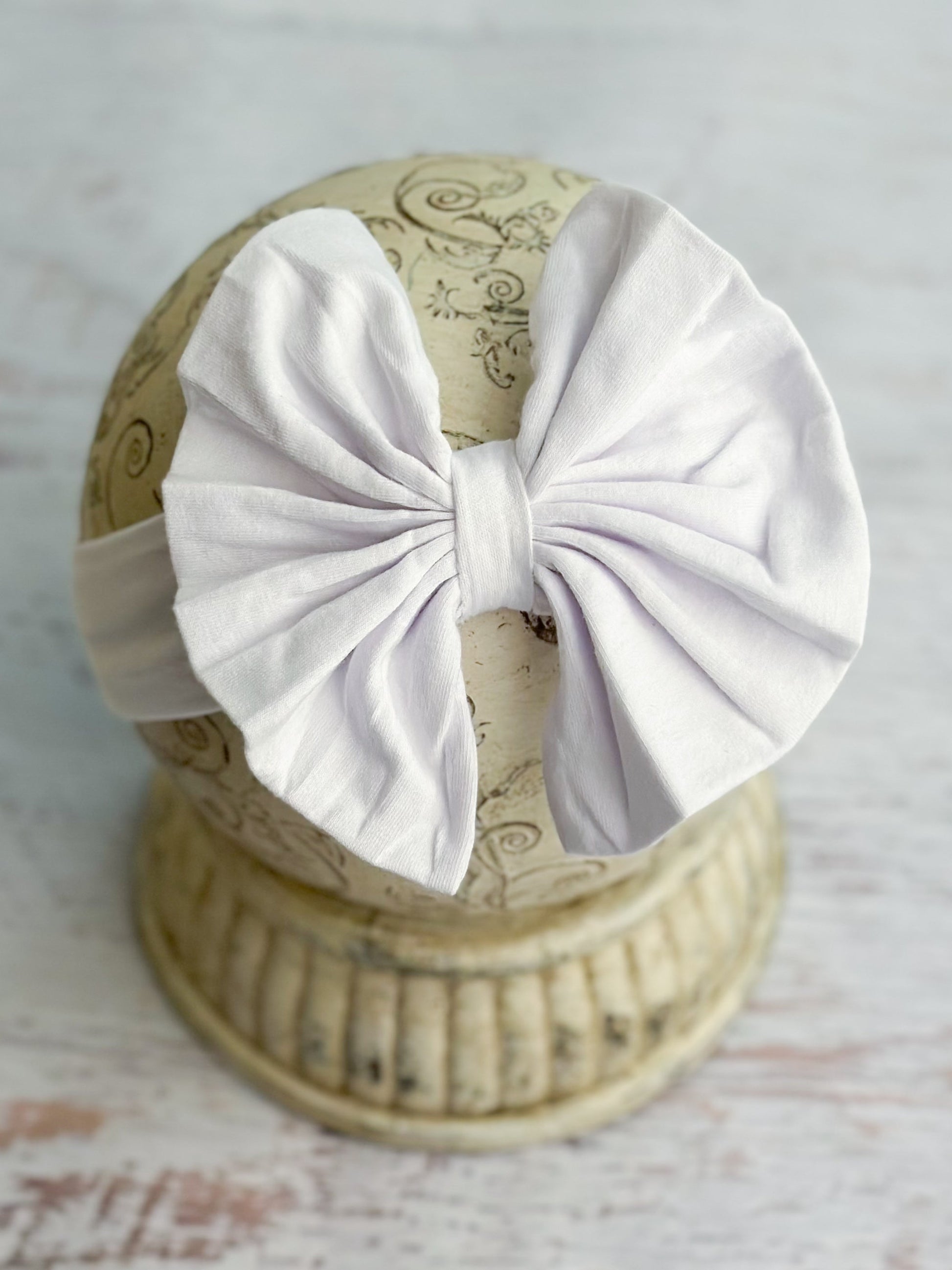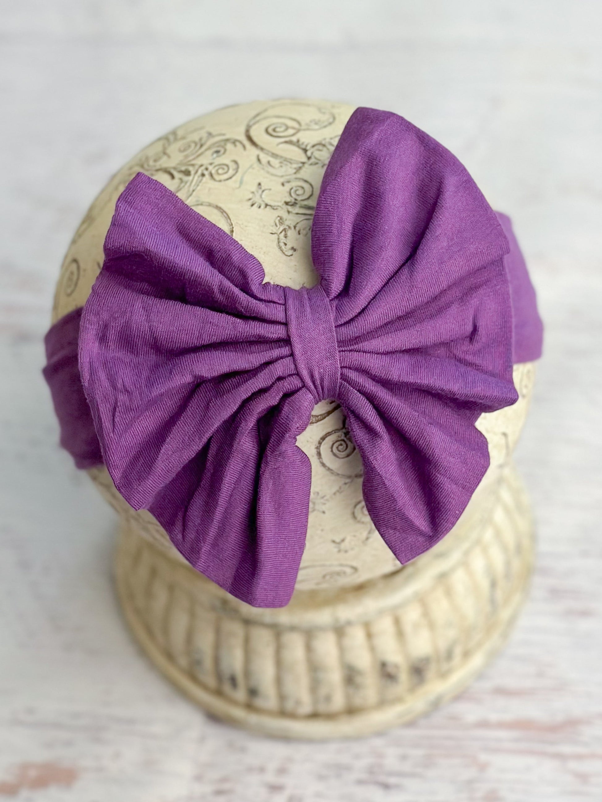 These cute cotton bow headbands are adorably oversized, just like those cute t-shirt bows you have seen, but none of the hassle of DIY! Each stretchy cotton blend fabric headband has a folded fabric bow and is sized to fit most babies and girls