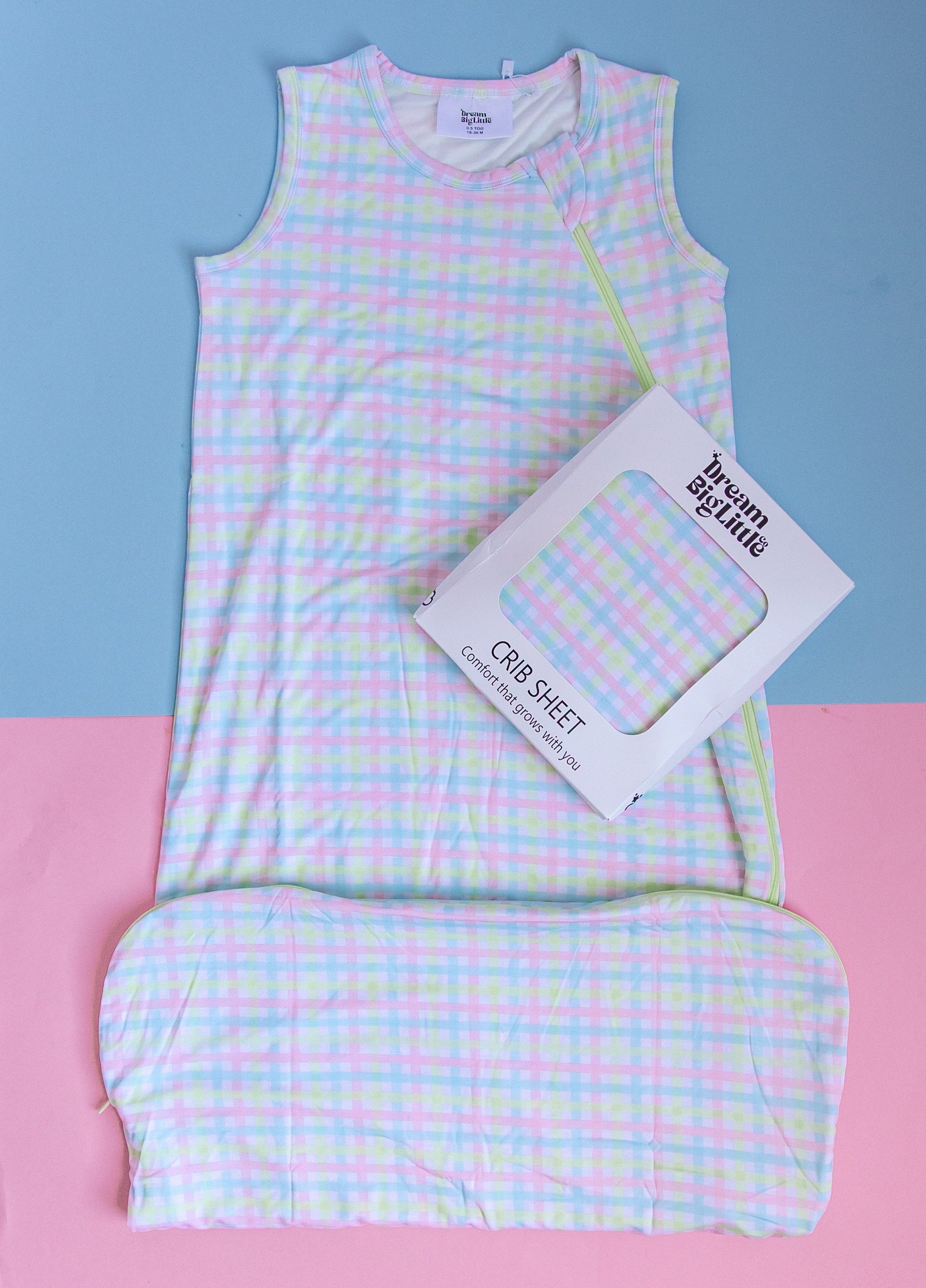 Wrap your little one in pure comfort with our Bamboo Spring Gingham Sleep Sack! This adorable 0.5 tog wonder is Easter-ready, boasting a playful print and irresistibly soft feel. Crafted for safety and sweet dreams, it's the ideal cocoon for your baby's sleep journey. Embrace the joy of slumber in style!