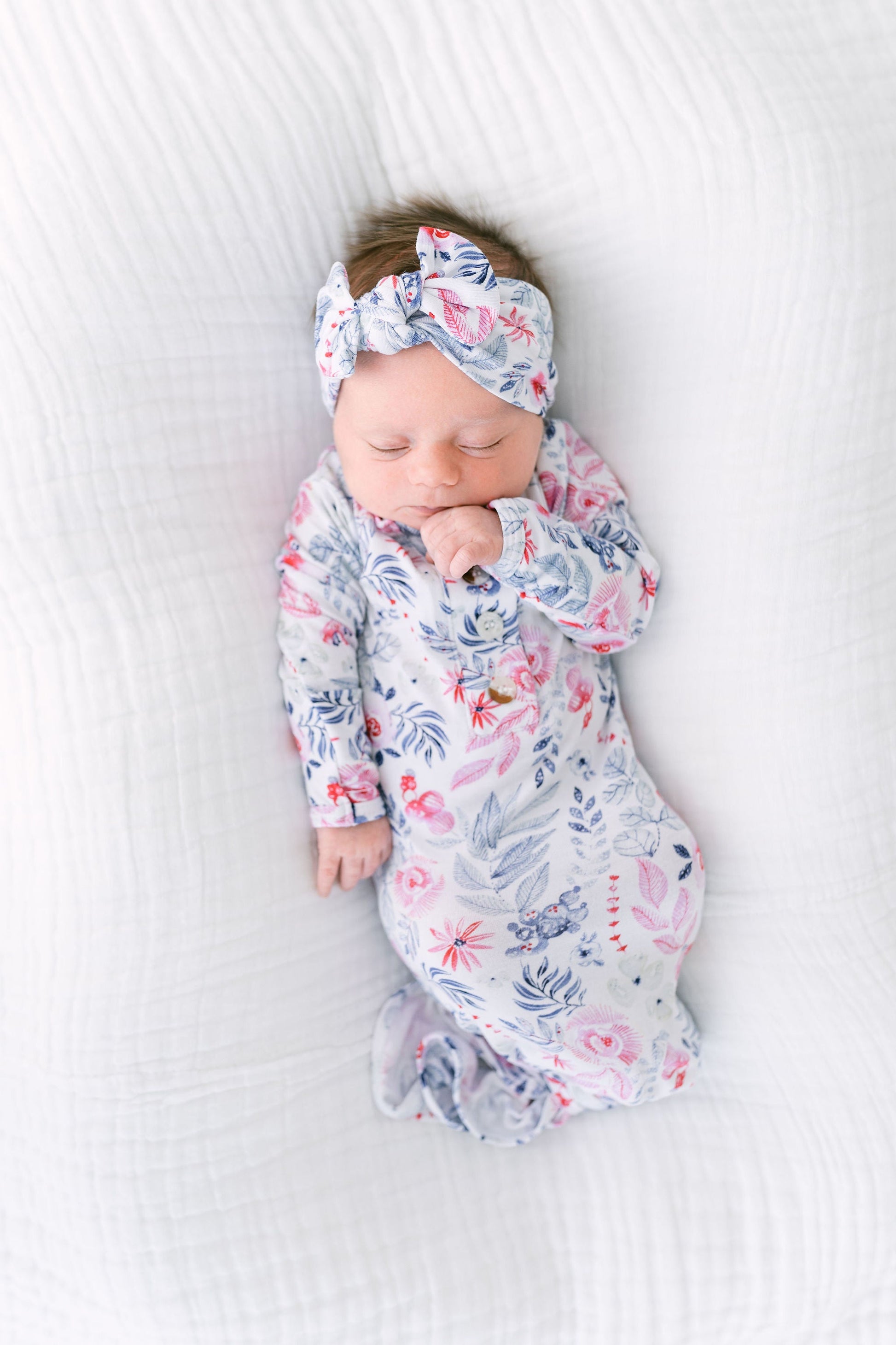Stroller Society Knotted Baby Gown and Hat Set with Headband - Bloom (Newborn-3 months)