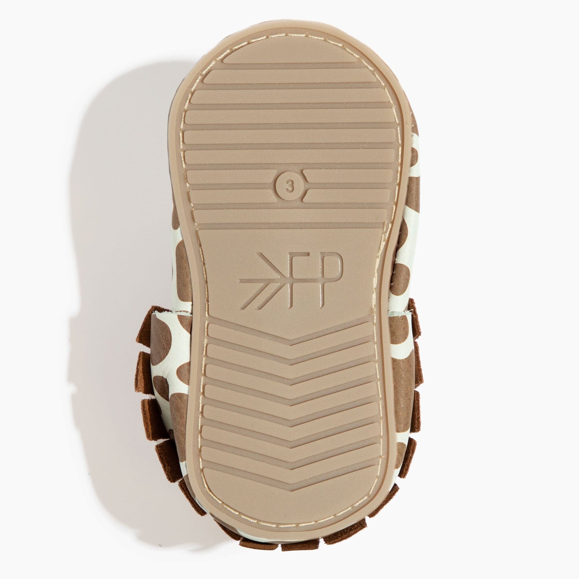 Made by hand from premium leather, these shoes feature a classic Moccasin design with fringe detail. With an elasticized ankle for easy wear, they guarantee gentle support and healthy foot development for your little one.