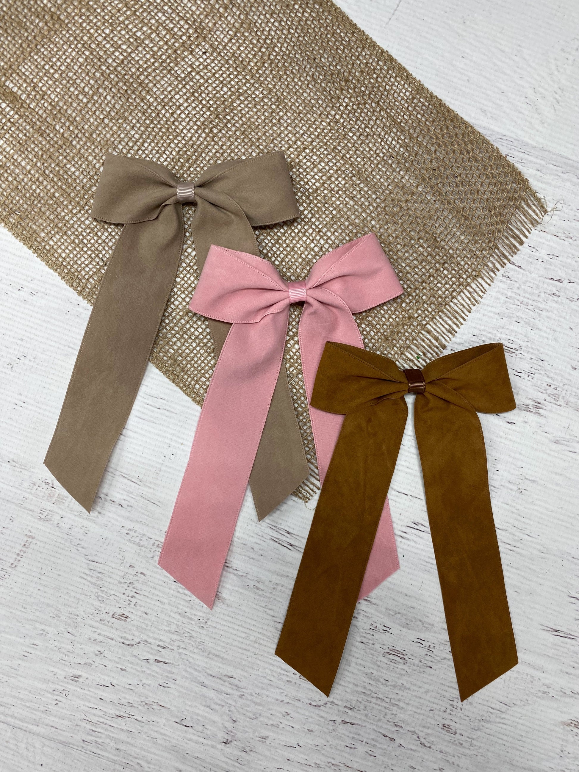Add a touch of charm and playfulness to your hairstyles with our Suede Ribbon Hair Bow! Made from soft suede ribbon, this hair bow adds a unique and quirky flair to any look. Perfect for adding a fun pop of style to your outfit, this hair bow is a must-have accessory for any fashion-forward individual.