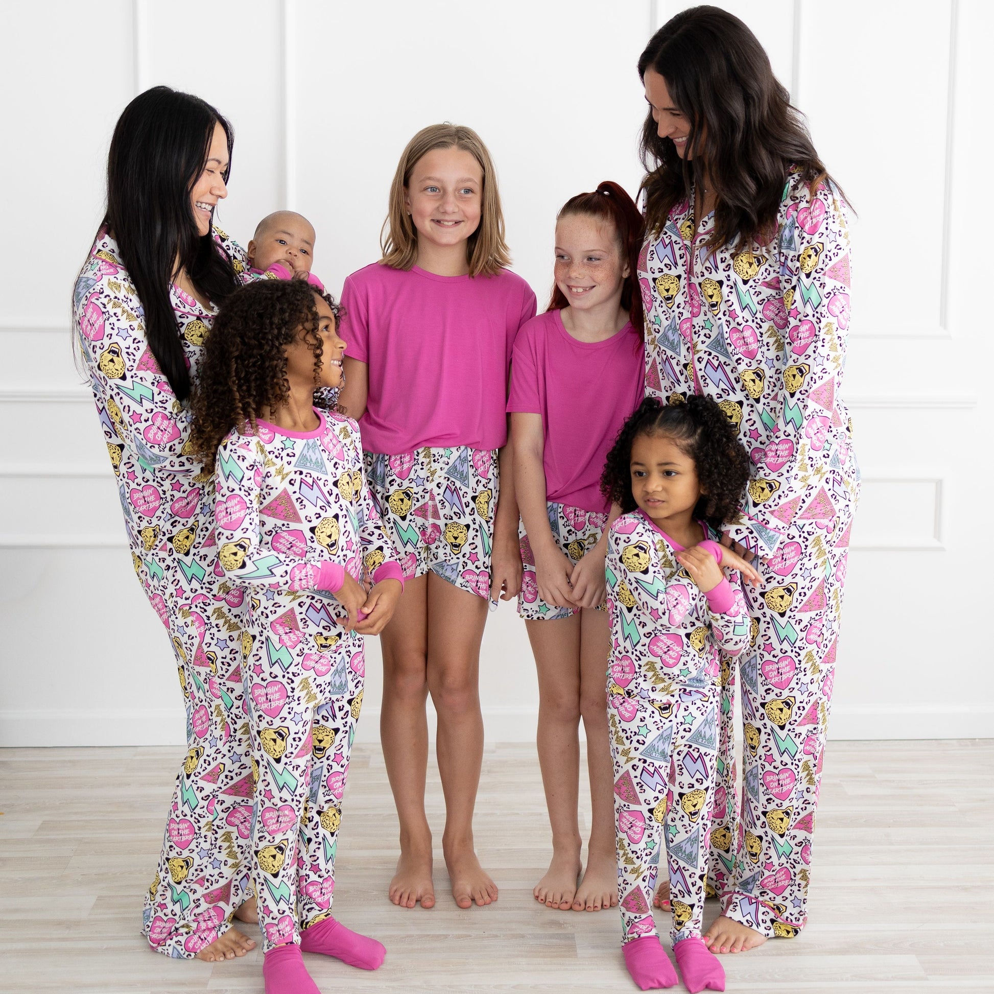 Turn up the volume on bedtime with our Sugar on Me Girls Youth Short Set, created in collaboration with the iconic Def Leppard. With bold, colorful graphics and a playful rock ’n’ roll vibe, this set is perfect for every little fan who loves to dream big. Crafted from our signature bamboo lyocell, it’s buttery-soft, breathable, and stretchy—keeping her cool and comfy whether she’s rocking out by day or snuggling in by night.
