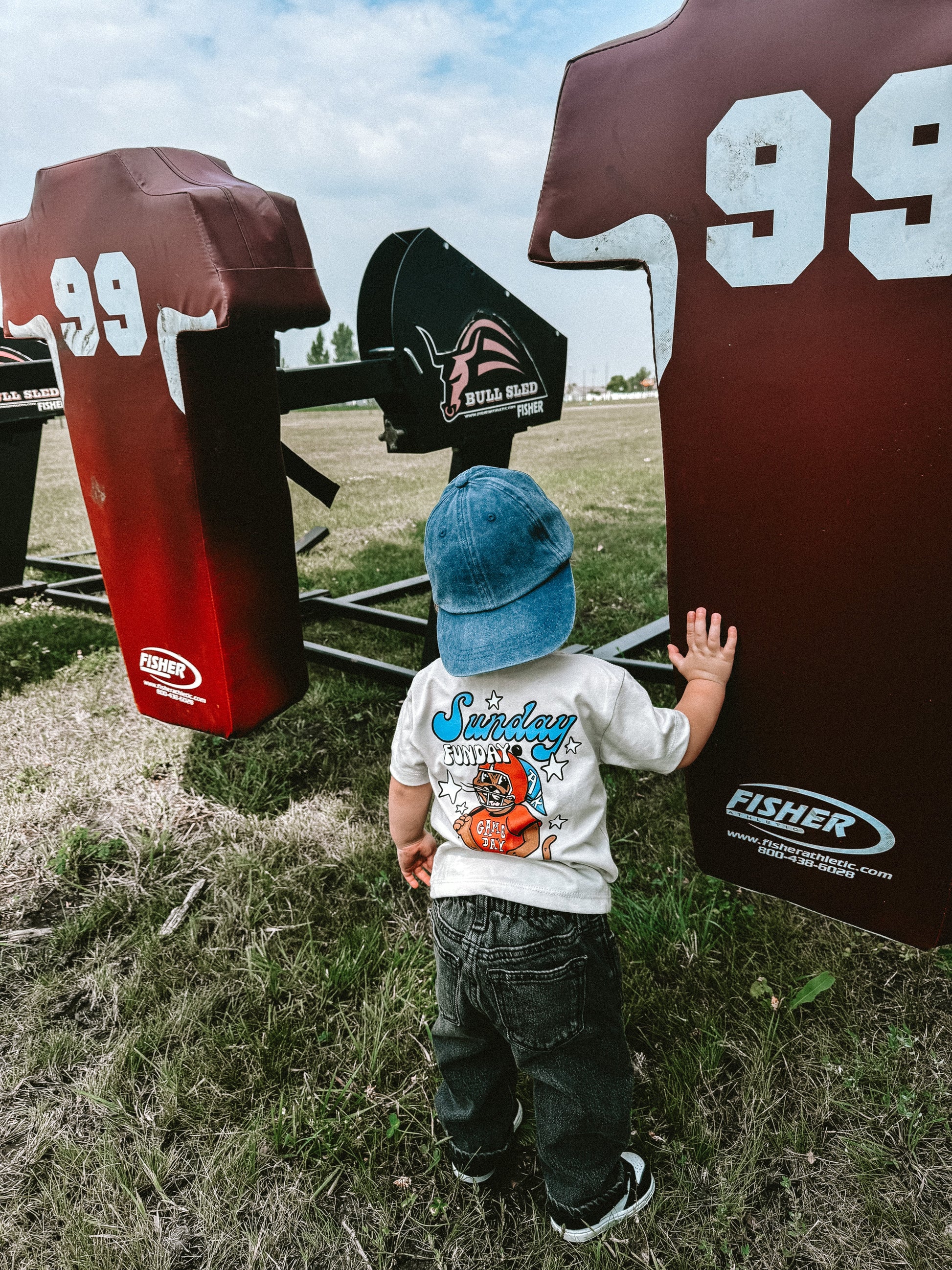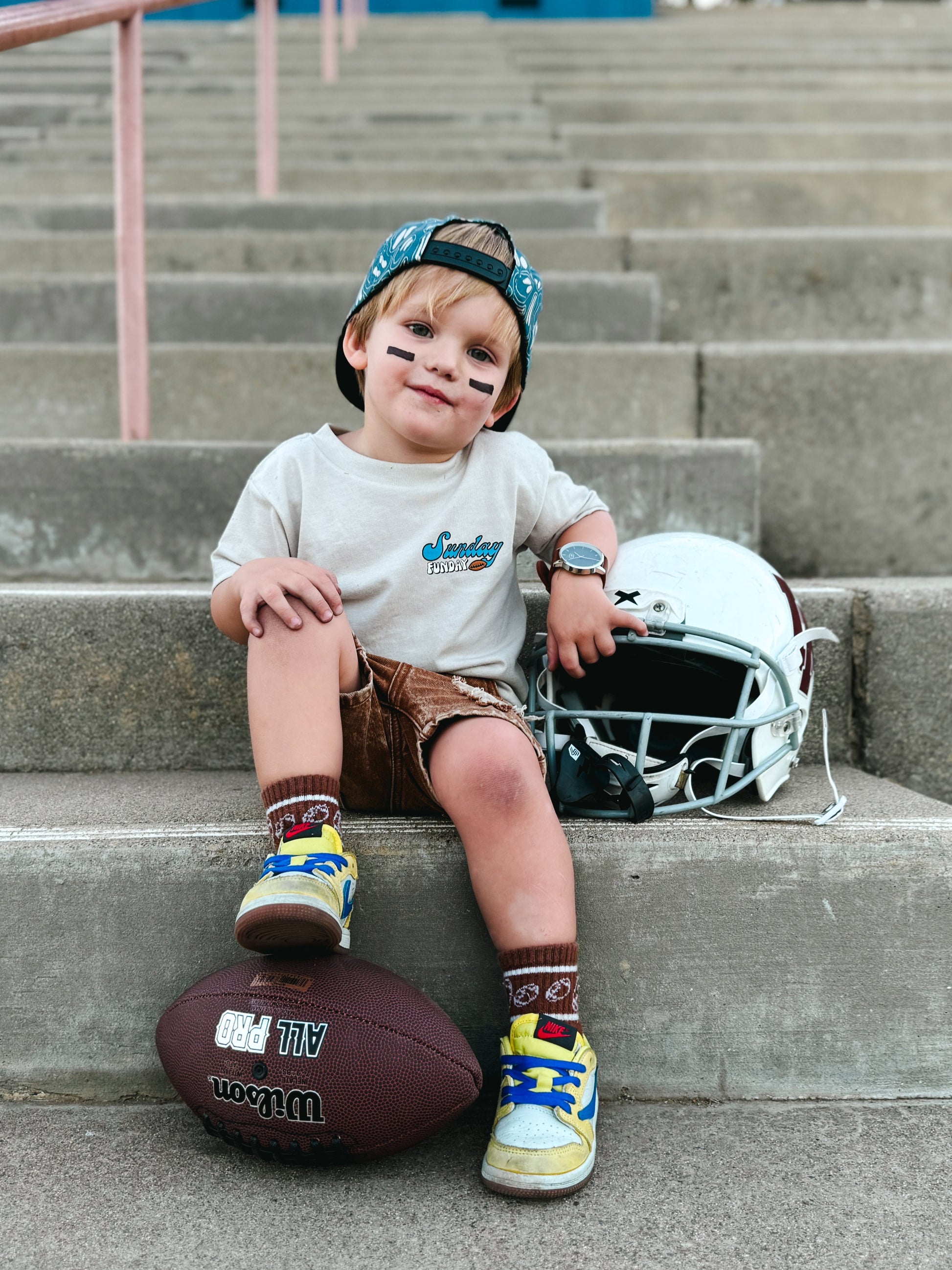 Fun retro design for any football lover! Front pocket design with large back design. Printed on Bella Canvas, available in 2T-YM