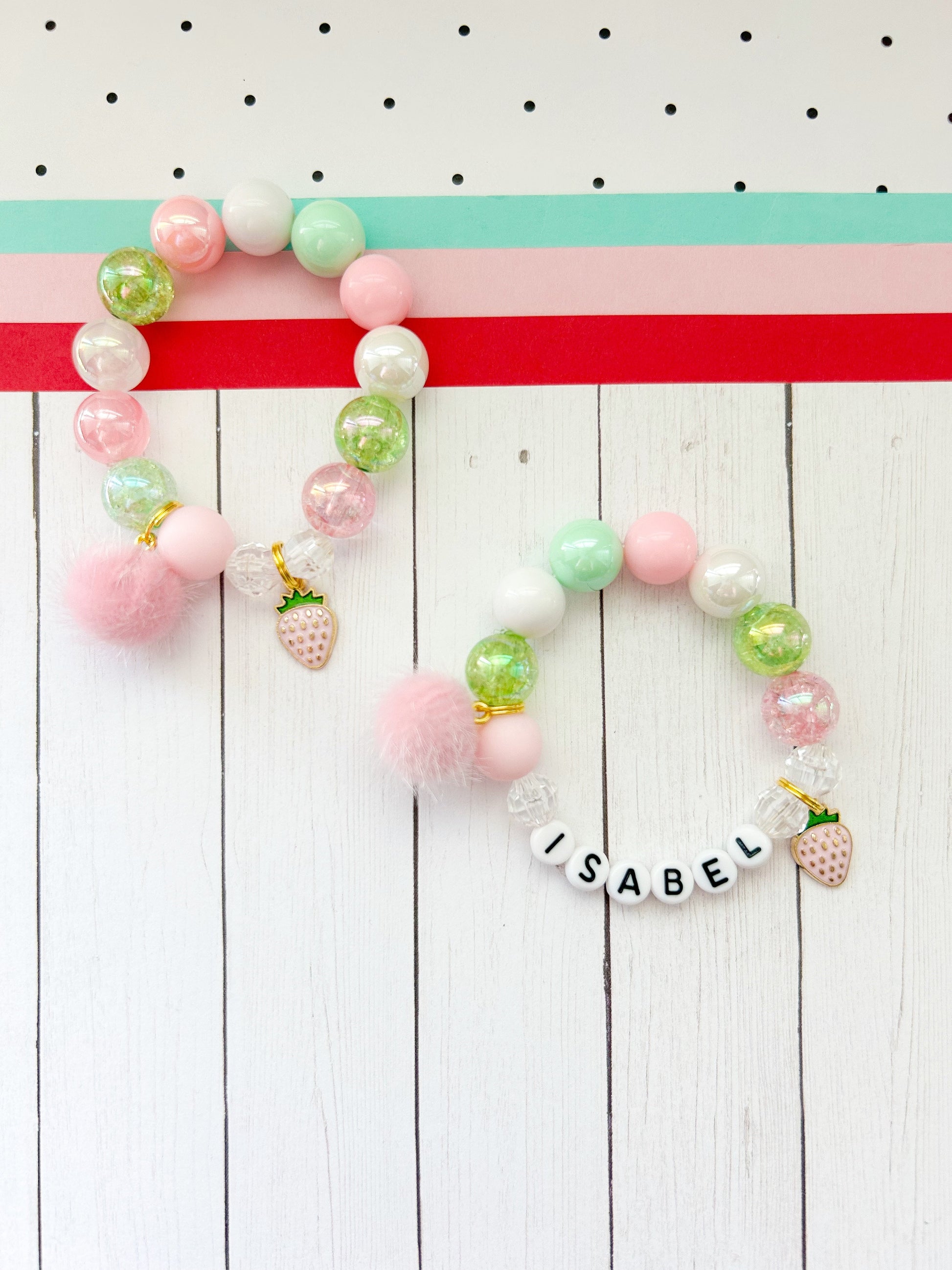 Sweet Strawberry Charm Bracelet PINK - Customizable