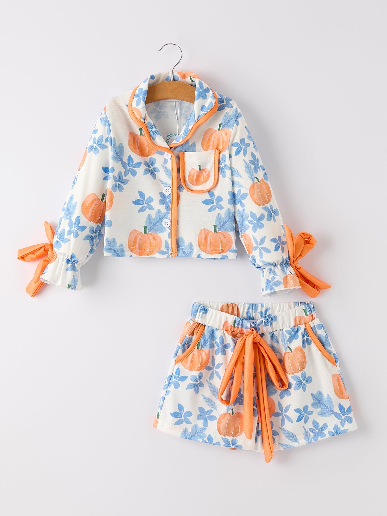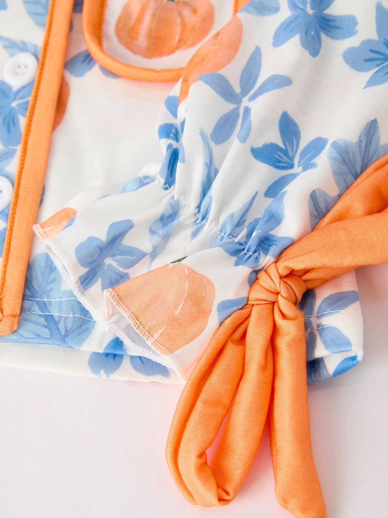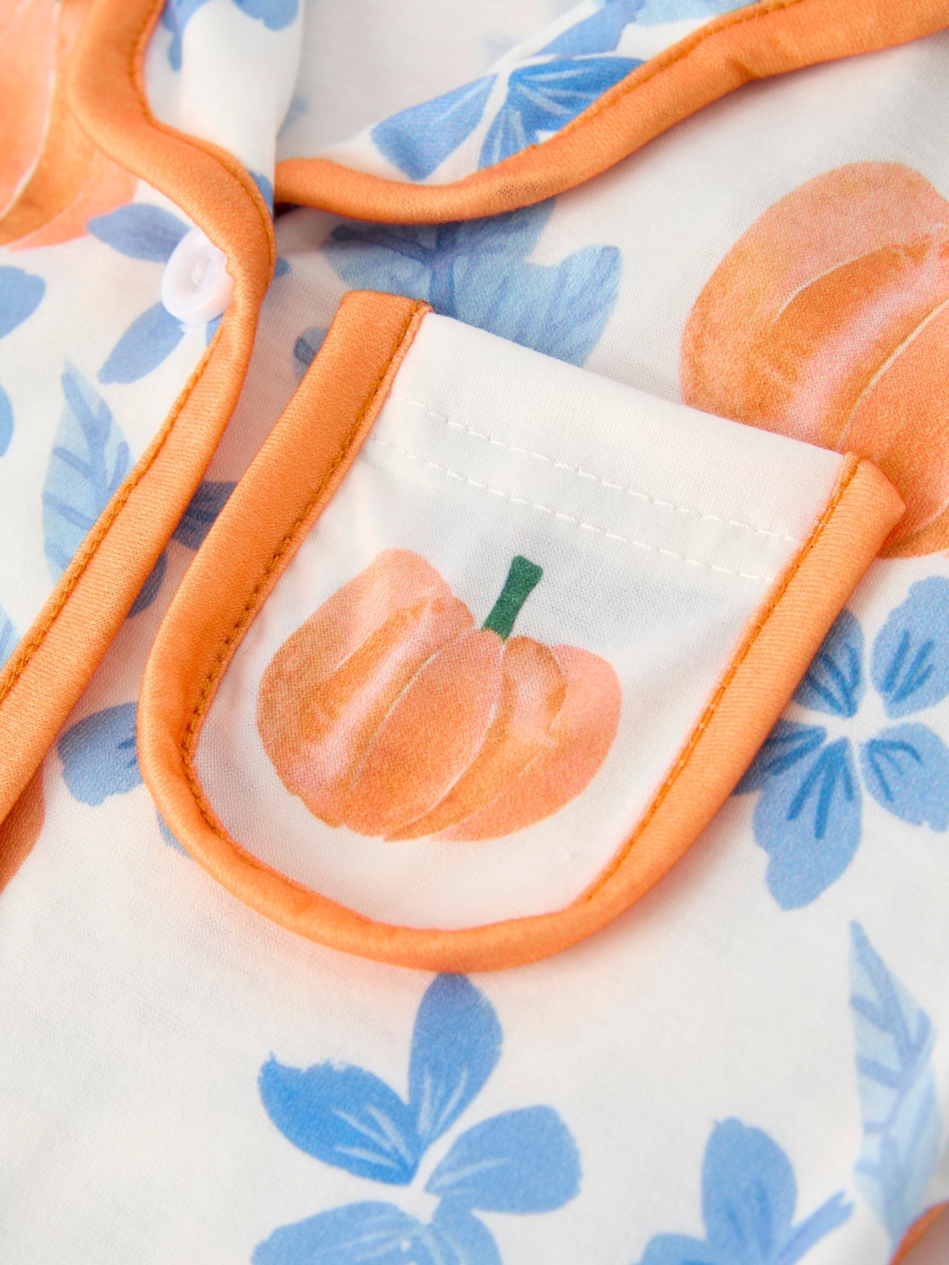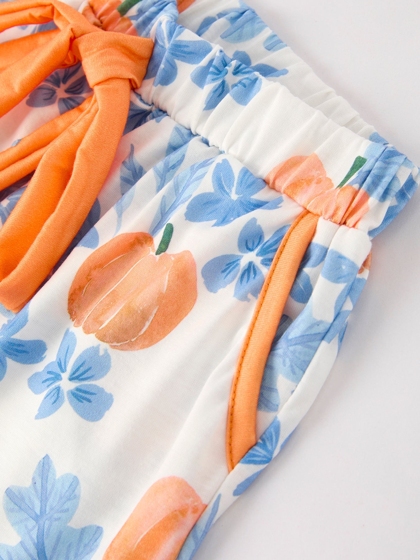 Thanksgiving Day Pumpkin Floral Print Girls Pajamas Set