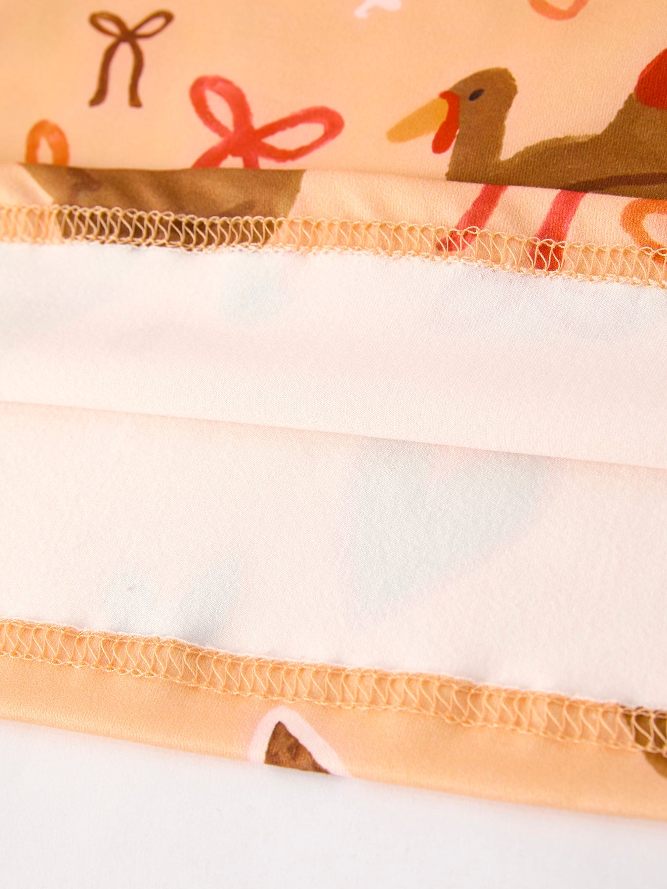 Thanksgiving Day Turkey Pie Print Ruffle Sleeve Dress