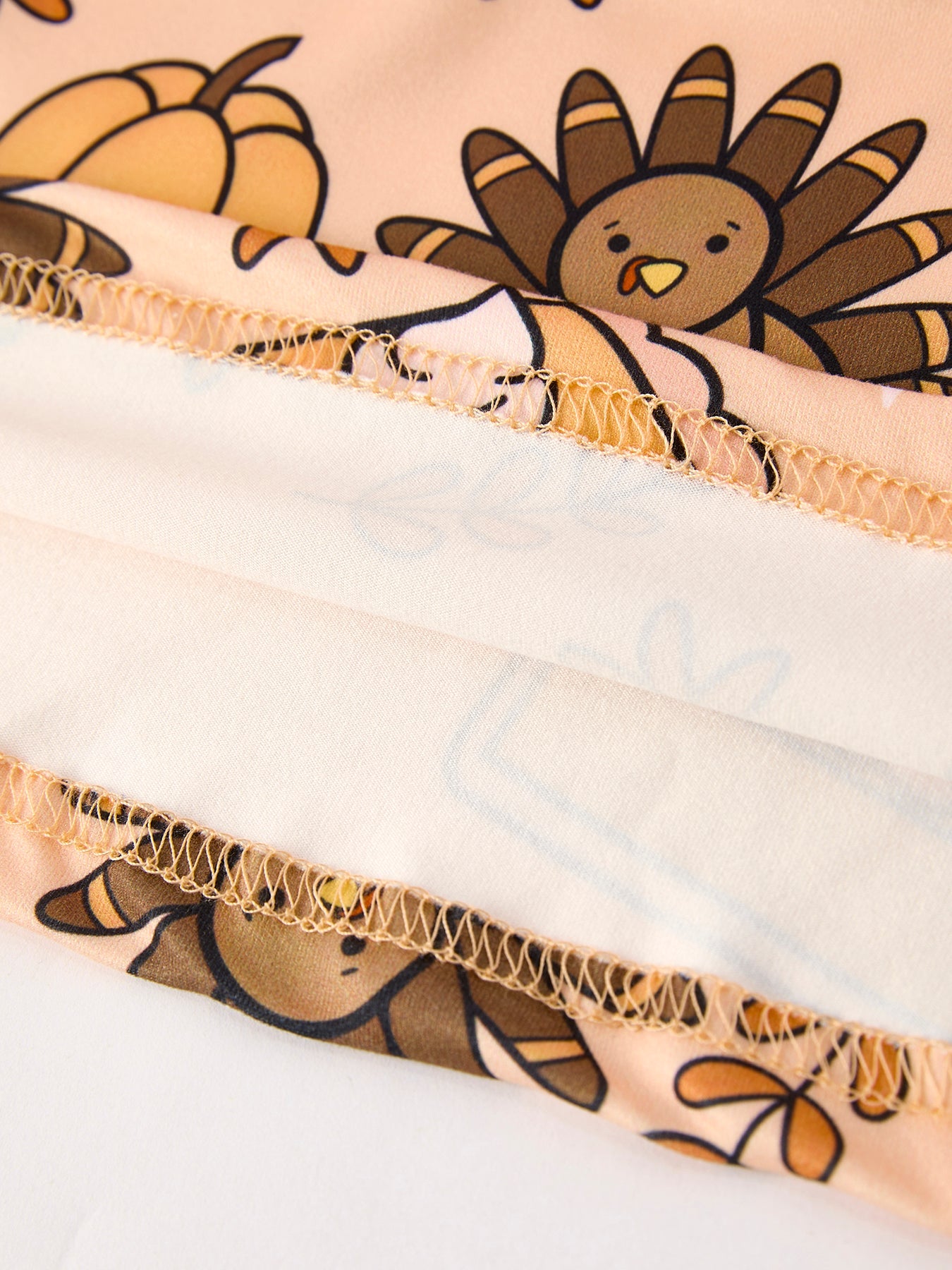 Get your little one ready for Thanksgiving with our Turkey Pie Print Ruffle Sleeve Dress! Featuring a festive design and delicate ruffle sleeves, this dress is perfect for your holiday celebrations. Made with comfort in mind, your child will be stylish and comfortable all day long. Order now and make this Thanksgiving extra special!