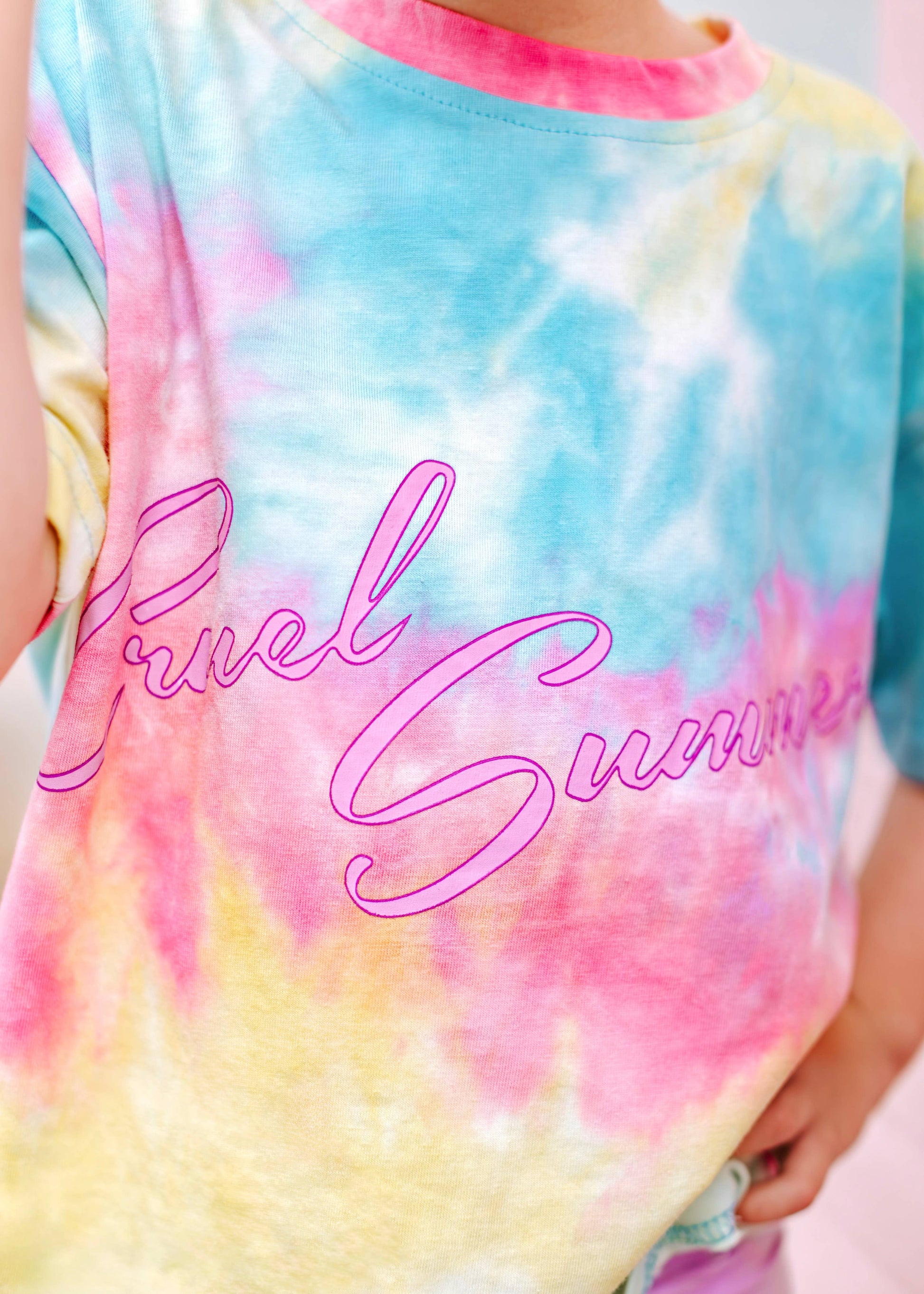 Brighten up her wardrobe with our "Cruel Summer" Tie-Dye Boxy Fit T-Shirt! Designed for the ultimate Swiftie, this trendy tee features a vibrant tie-dye pattern and a relaxed, boxy fit for ultimate comfort. The bold "Cruel Summer" graphic on the front adds a fun and stylish touch, making it perfect for all her sunny day adventures. Whether she's heading to a playdate, a picnic, or just enjoying some outdoor fun, this t-shirt is a versatile and eye-catching addition to her summer outfits. Let her embrace the carefree spirit of summer with this cool and comfortable tie-dye tee! These are oversized and have a boxy fit.