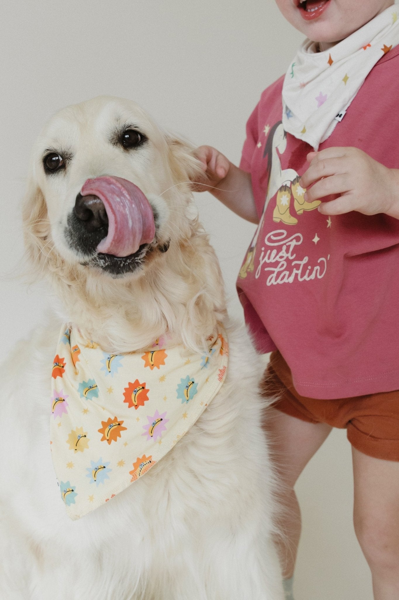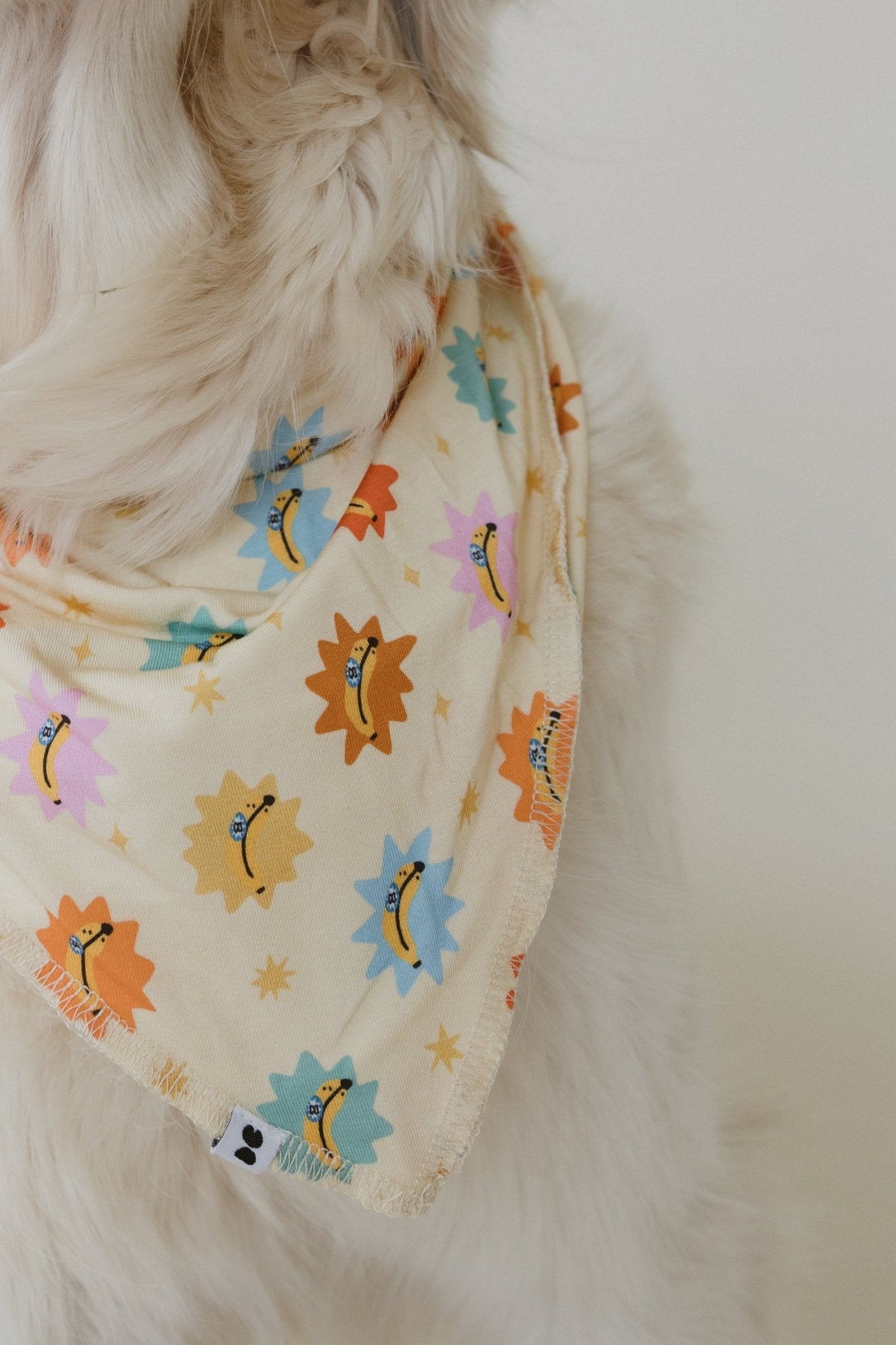 made from the same dreamy-soft bamboo as our pajamas, these bandanas are perfect for pups or kids. use them as a neck scarf, hair wrap, or just a fun pop of print. we won’t tell you how to wear it.