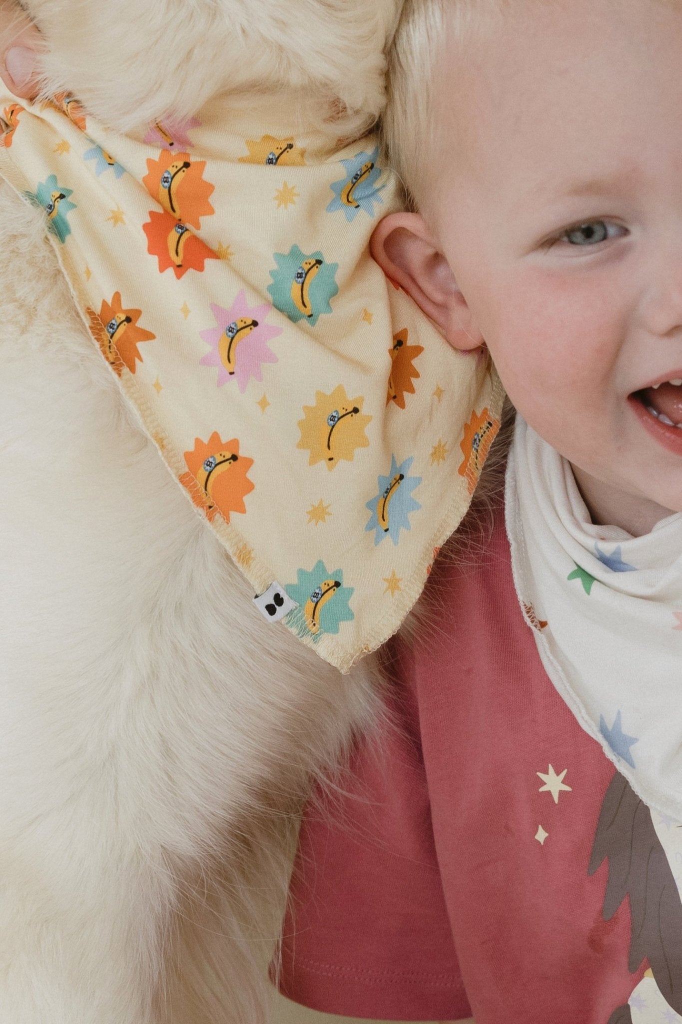 soft bamboo. made to match your kiddo or your dog. available in starstruck + it’s bananas.