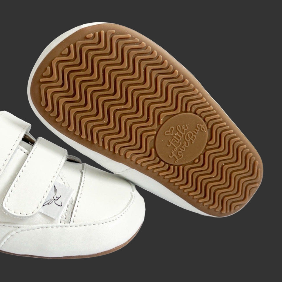 Sizes 5–13 feature our barefoot sole. Sizes 2–4 include our original non-slip soft soles—intentionally designed to support the earliest stages of walking. The leather sole in these smaller sizes allows for the most natural movement and optimal foot development.