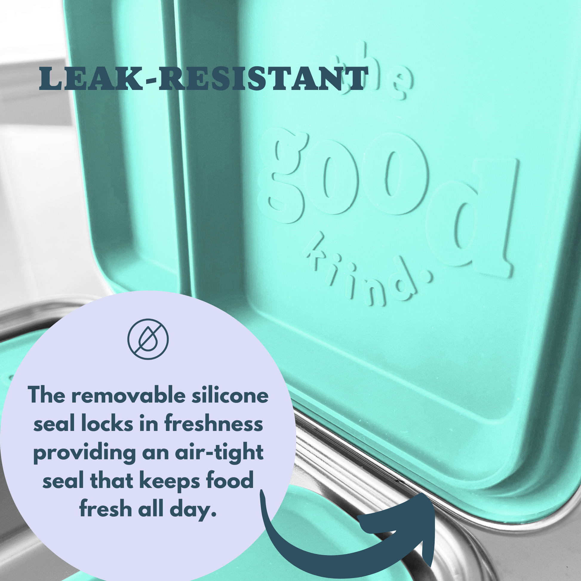 The Snacker™'s interior, removable silicone seal was designed to prevent leaks of thicker runnier foods within the lunch box. Parent's and caretaker can pack cottage cheese, yogurt, hummus, etc right in the lunch box. For super runny foods like the juice from fruits or those with water-like consistency should use the side scoops OR add a thin paper towel to the base of the compartment to pack such items.