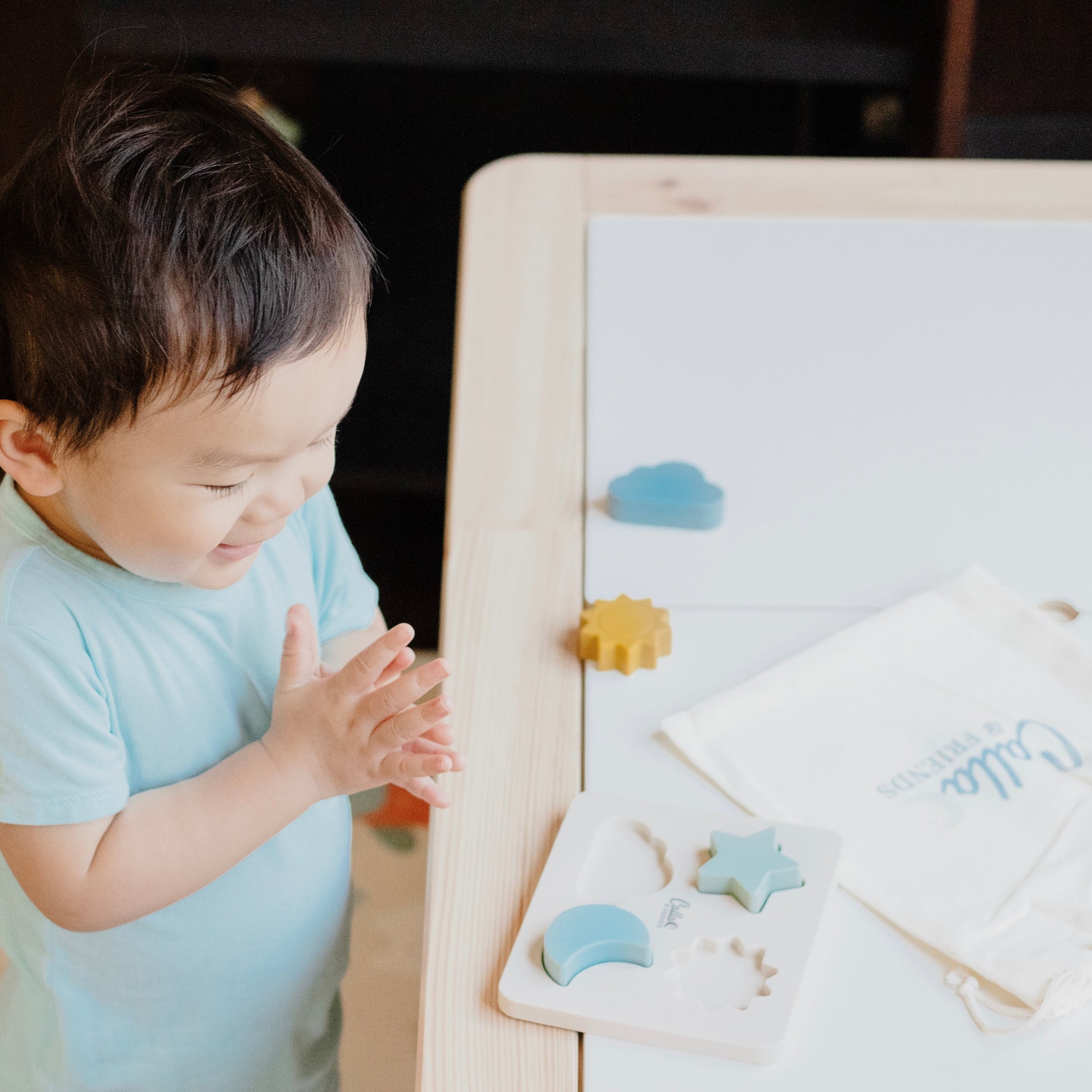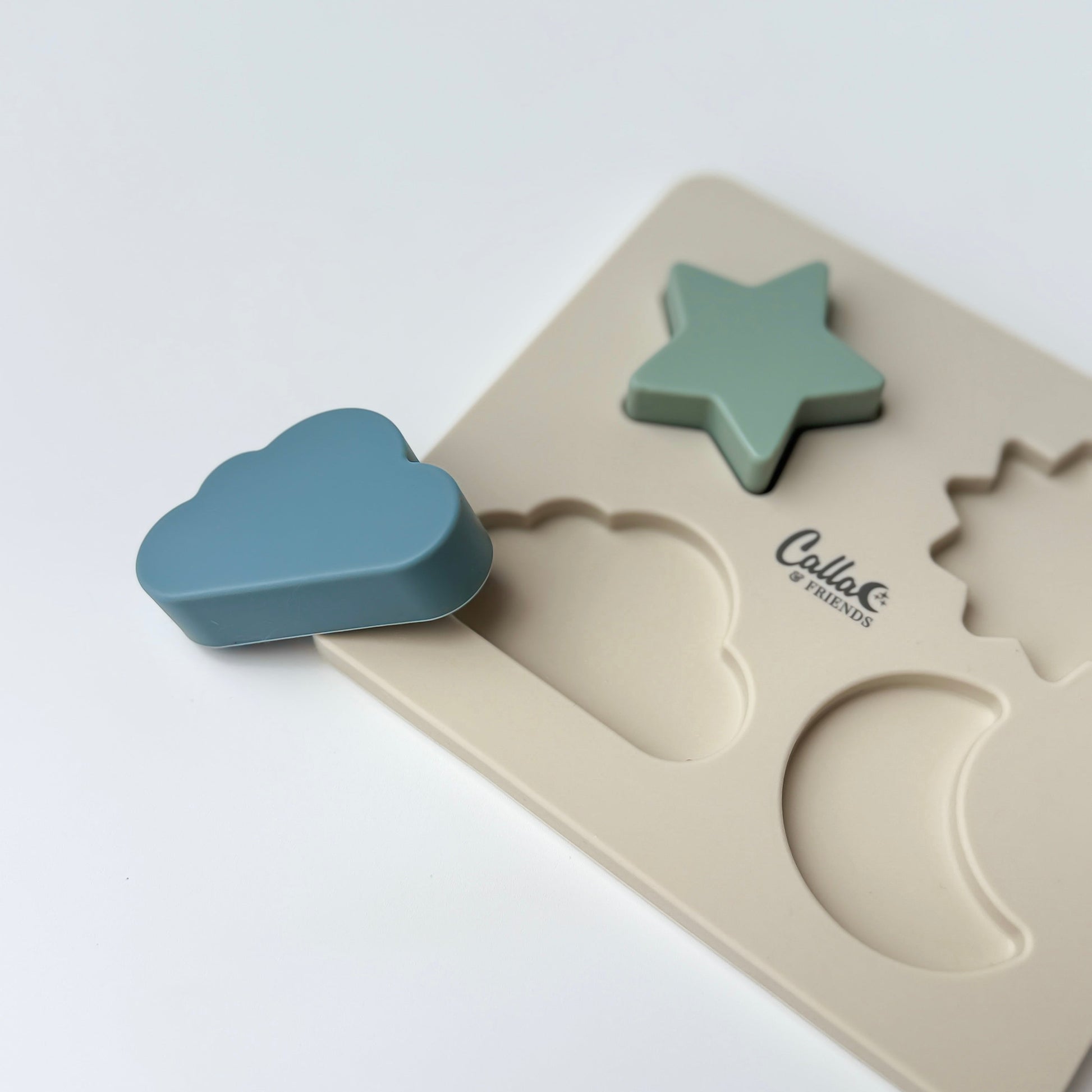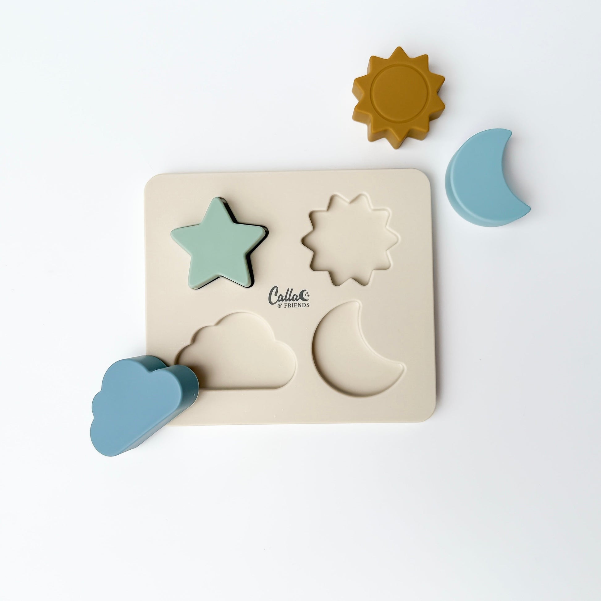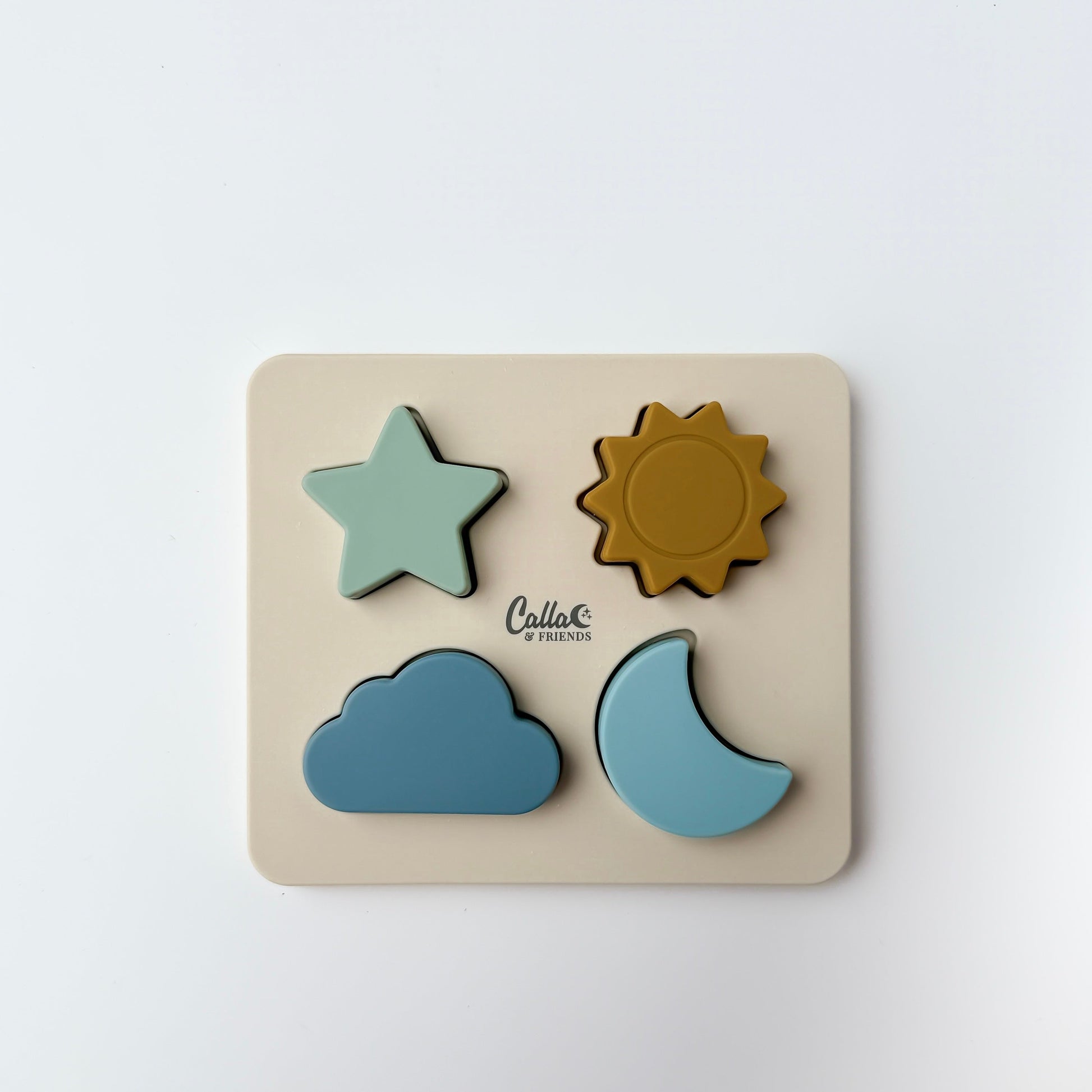 Unleash their imagination and reach for the stars with our Thomas puzzle! Crafted from food-grade silicone, this puzzle is not only entertaining, but also a safe teething companion for your little ones. Watch as their curiosity takes flight while they piece together the stars, clouds, moon, and sun. Enhance their cognitive skills through matching and provide soothing relief during teething. It comes in our convenient cotton drawstring storage bag, making it perfect to throw in your diaper bag & keep all the pieces together. Let their journey to the sky begin with the Thomas Puzzle!