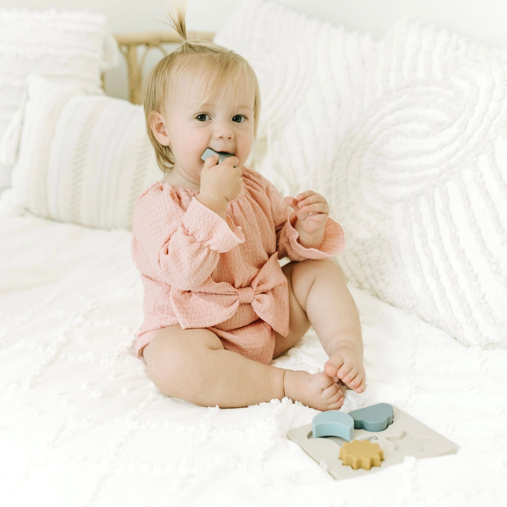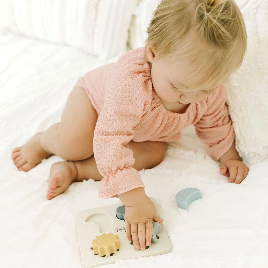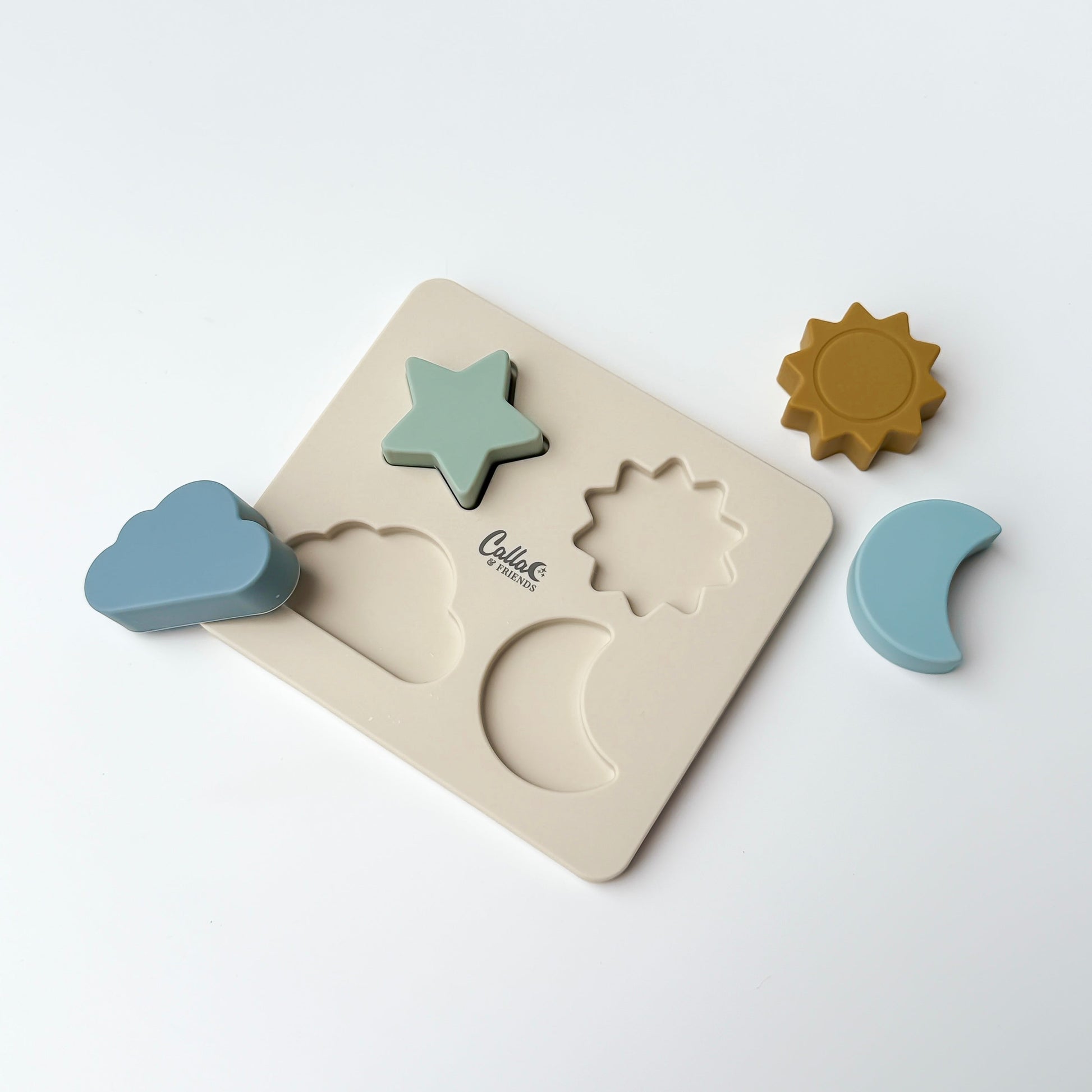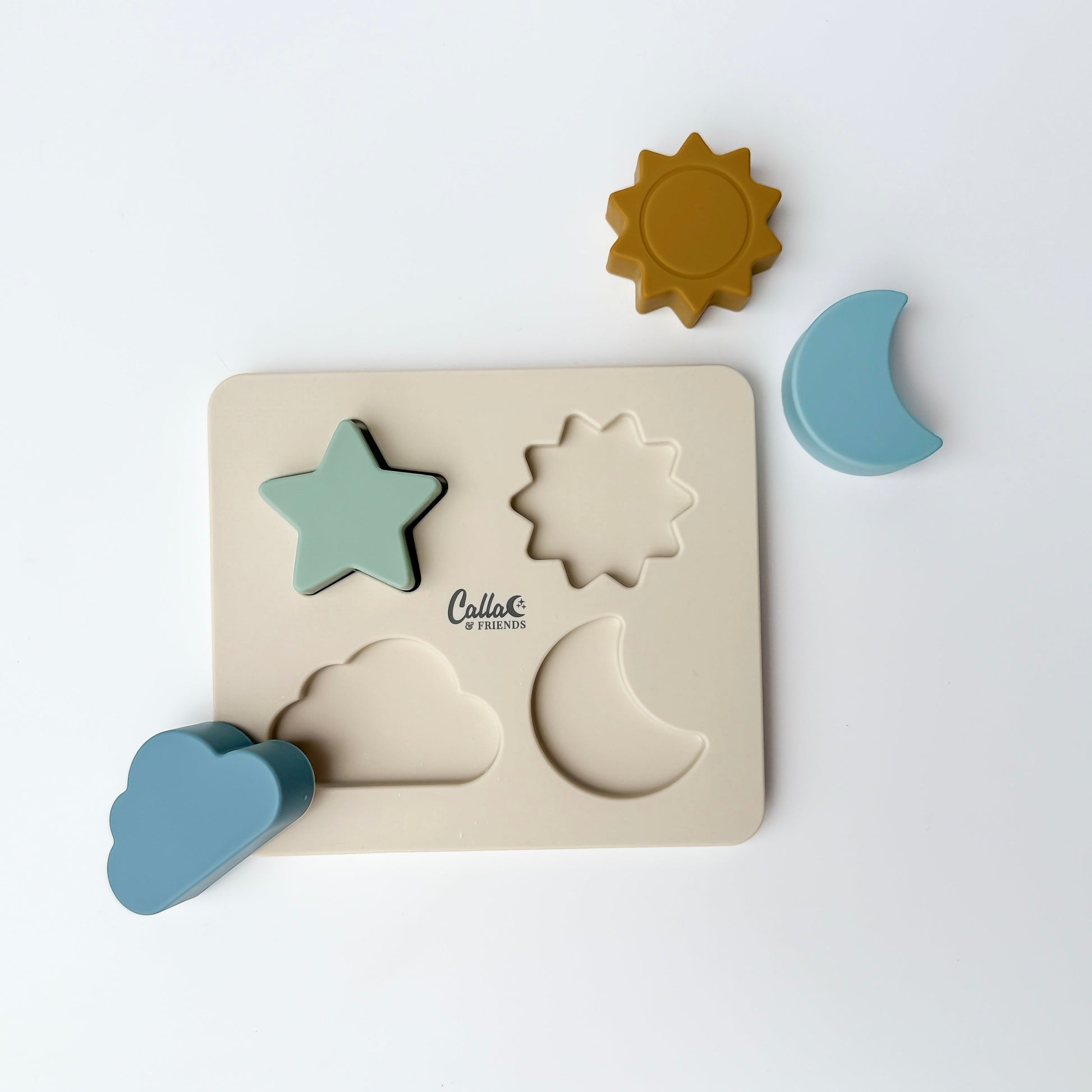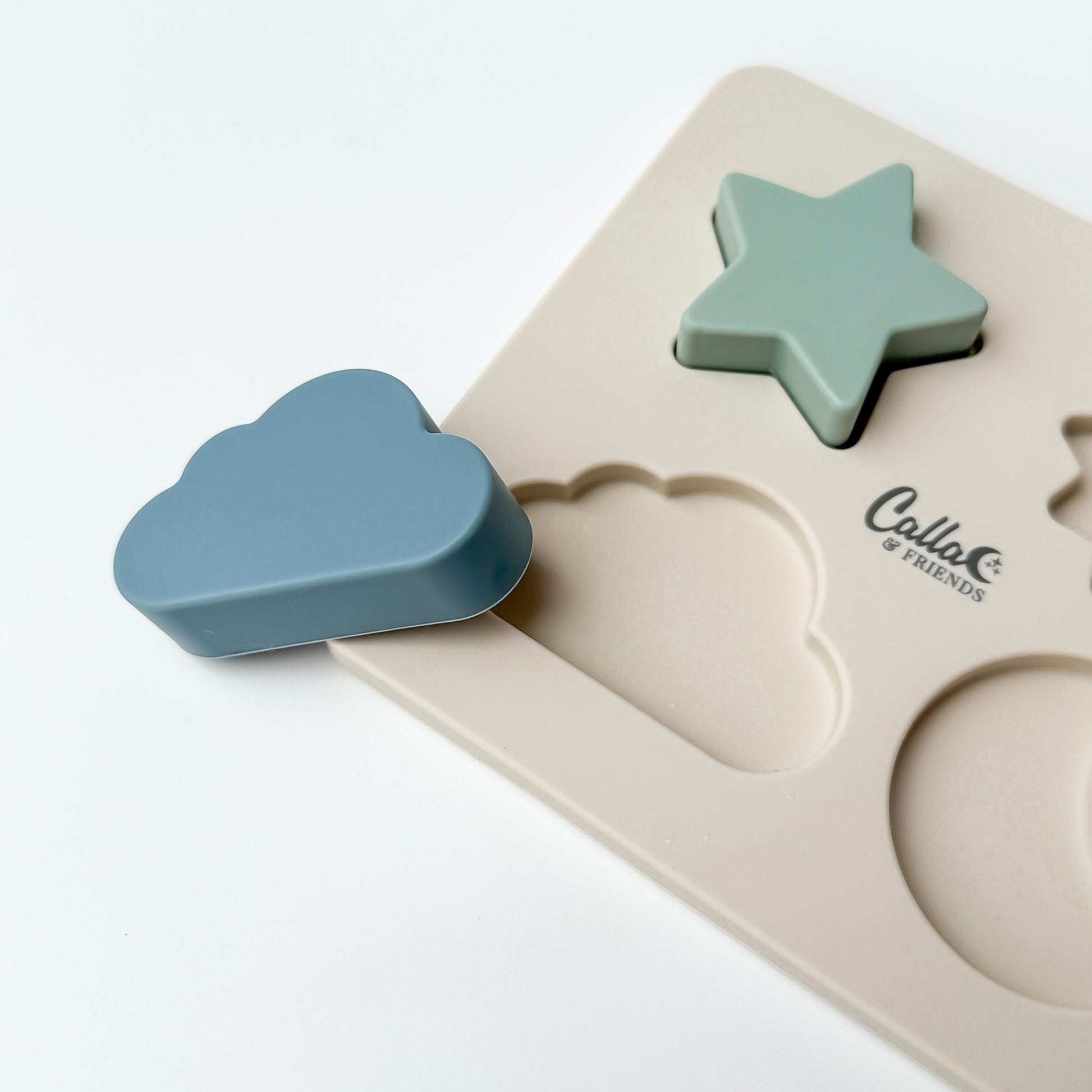 Unleash their imagination and reach for the stars with our Thomas puzzle! Crafted from food-grade silicone, this puzzle is not only entertaining, but also a safe teething companion for your little ones. Watch as their curiosity takes flight while they piece together the stars, clouds, moon, and sun. Enhance their cognitive skills through matching and provide soothing relief during teething. It comes in our convenient cotton drawstring storage bag, making it perfect to throw in your diaper bag & keep all the pieces together. Let their journey to the sky begin with the Thomas Puzzle!