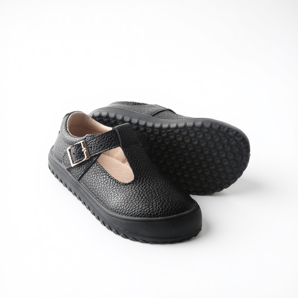 Our Latest Line of Play Perfects! Designed with active school days in mind, these barefoot-style shoes are built to withstand playground adventures. Available in sizes up to children's size 3, they feature a flat, flexible sole, wide toe box, and genuine leather for durability and style.