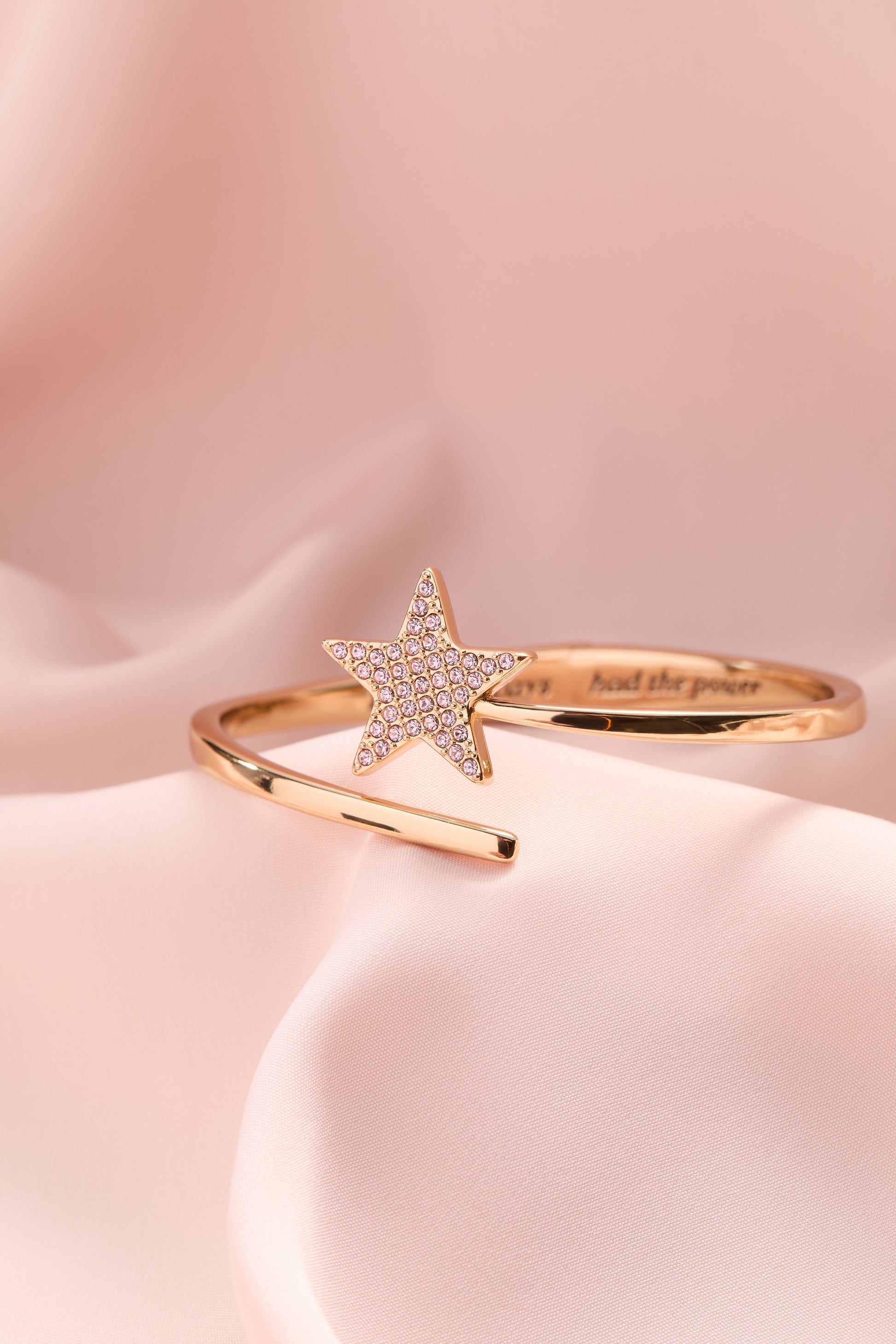 Celebrate the magic of The Wizard of Oz™ with this sparkling bypass cuff featuring Glinda's iconic wand, elegantly detailed with vintage rose pave stones. The design captures Glinda’s enchanting charm while offering a glittery touch to your wrist. Inside the band, a heartfelt quote reminds you, "You've always had the power," inspiring confidence and a little whimsy every day. Perfect for fans who love a mix of nostalgia and style, this cuff adds a sprinkle of magic to any outfit.