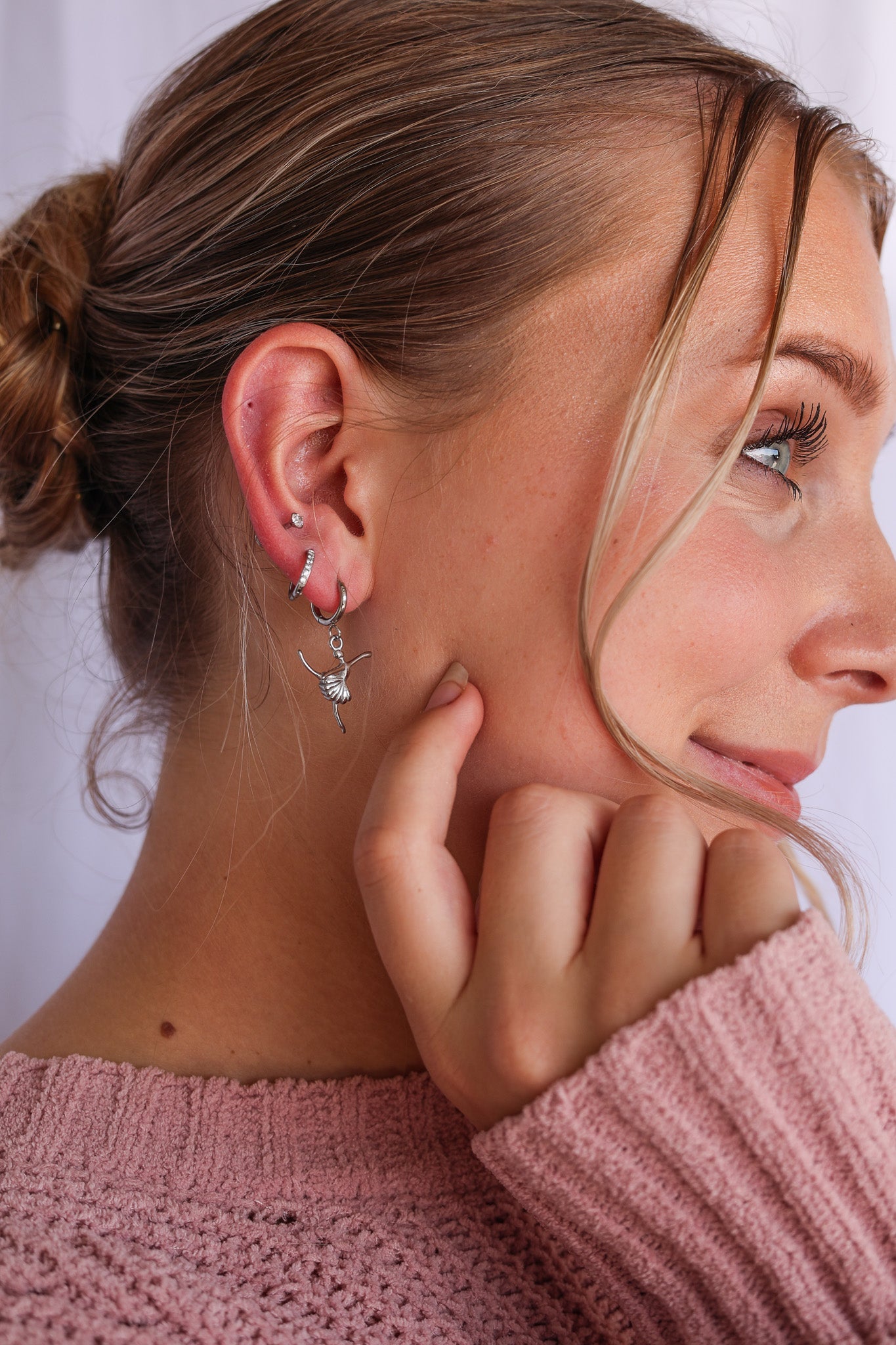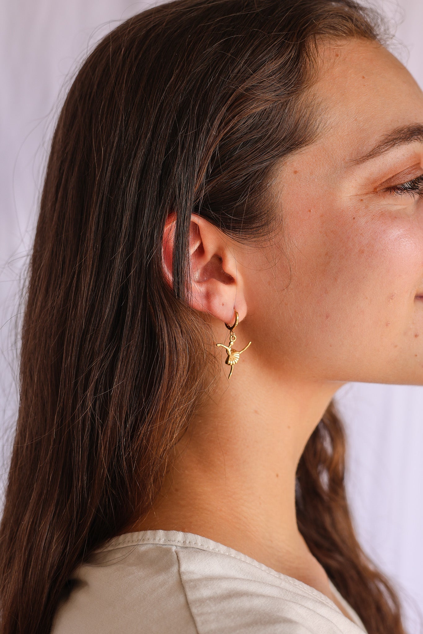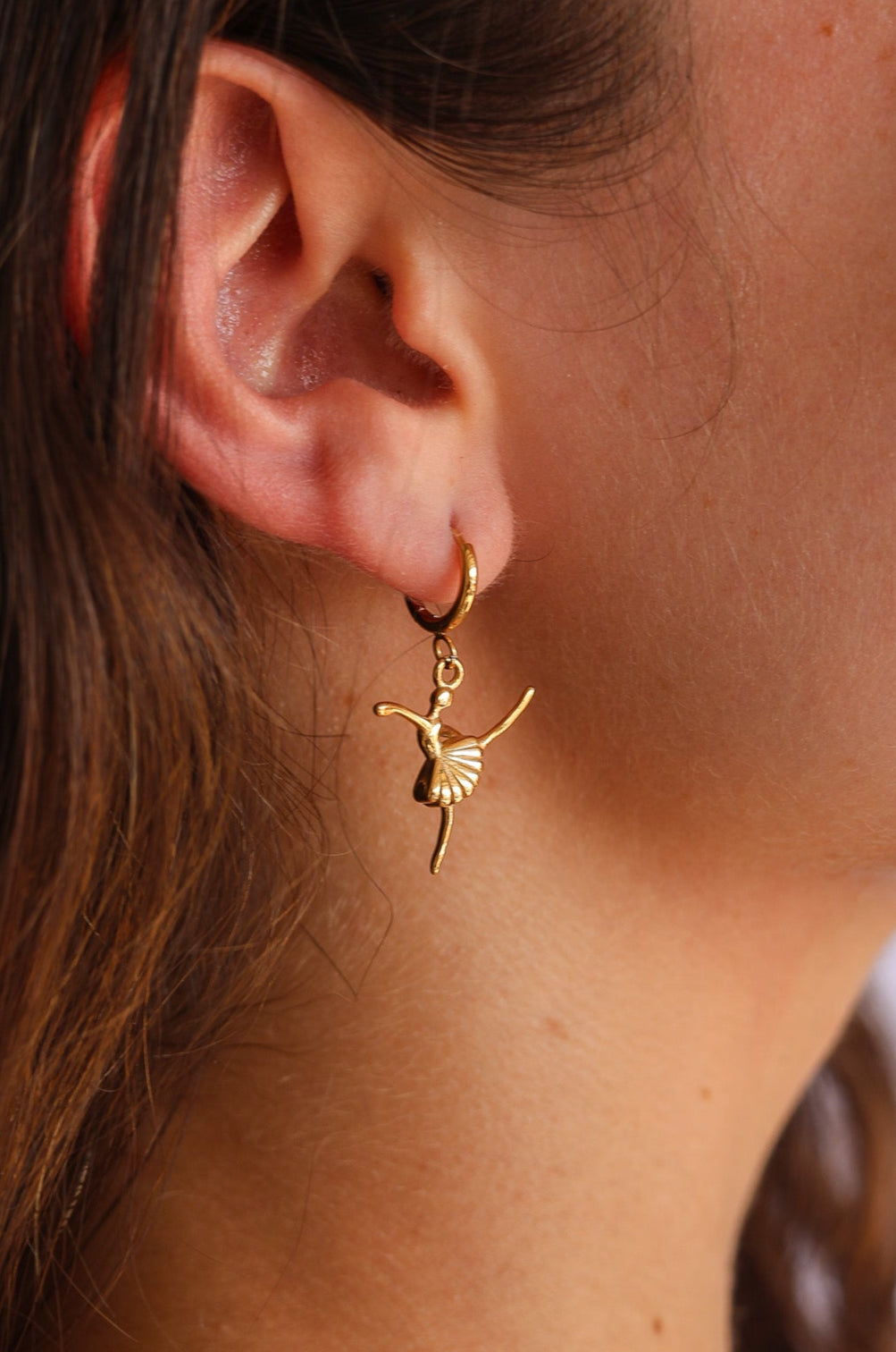How PERFECT are these?? I am obsessed with these dancer huggie hoops! This dainty earring is so fun and feminine and can easily be worn by all ages for all kinds of occasions. Wear it alone, or as part of an ear stack, this tiny dancer is going to be so cute on you!