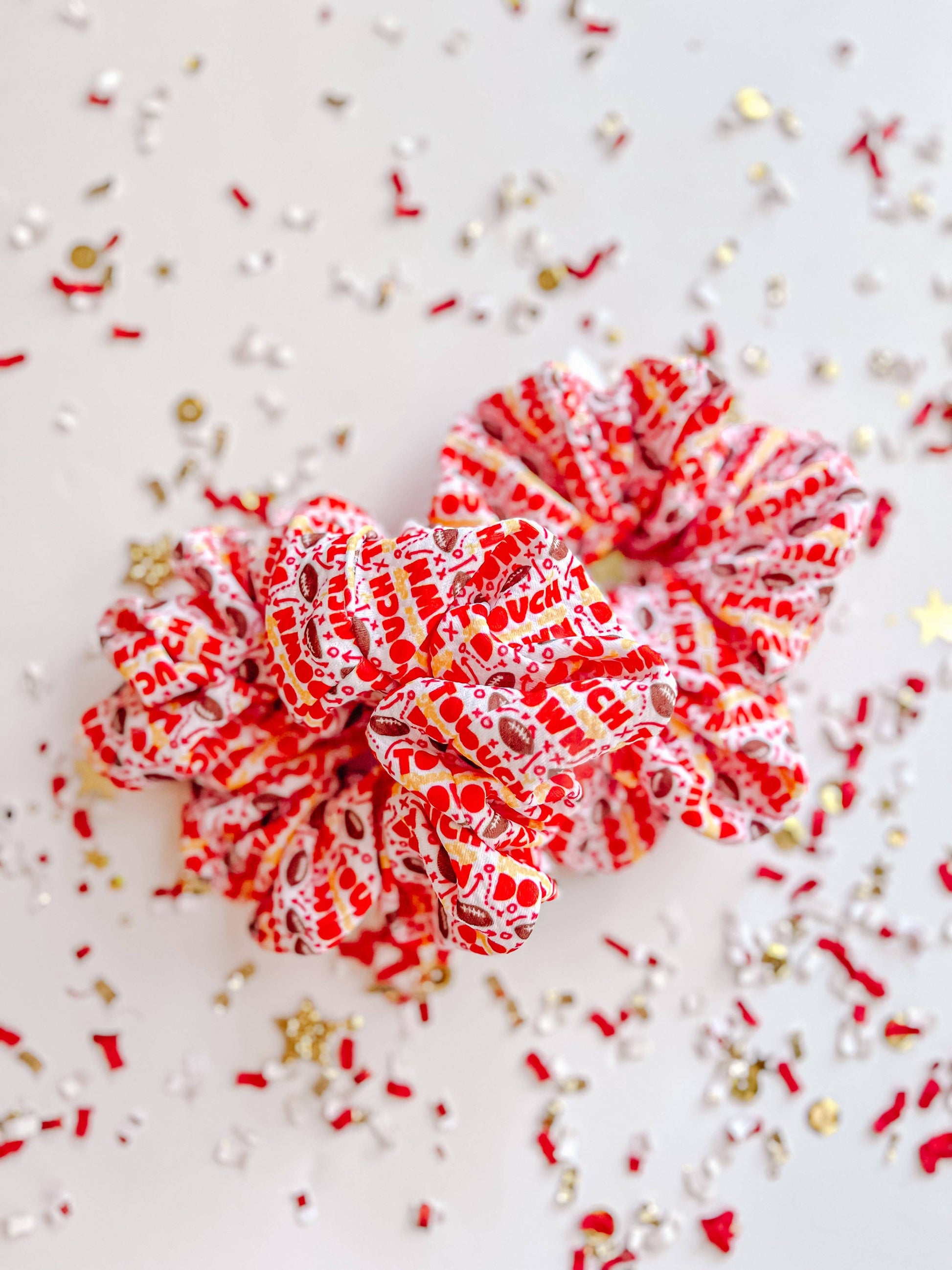 Complete your game day look with our oversized scrunchies, designed for Kansas City Chiefs fans! Made from soft bullet fabric, these scrunchies feature the Evie Pearl Handmade logo and are perfect for girls, teens, and women. Whether you're heading to a Red Friday event, a tailgate party, or cheering on the Chiefs, these scrunchies offer both comfort and style. Their oversized design adds a bold touch to any outfit, making them a must-have accessory for showing off your team spirit. Shop now and elevate your game day hair!