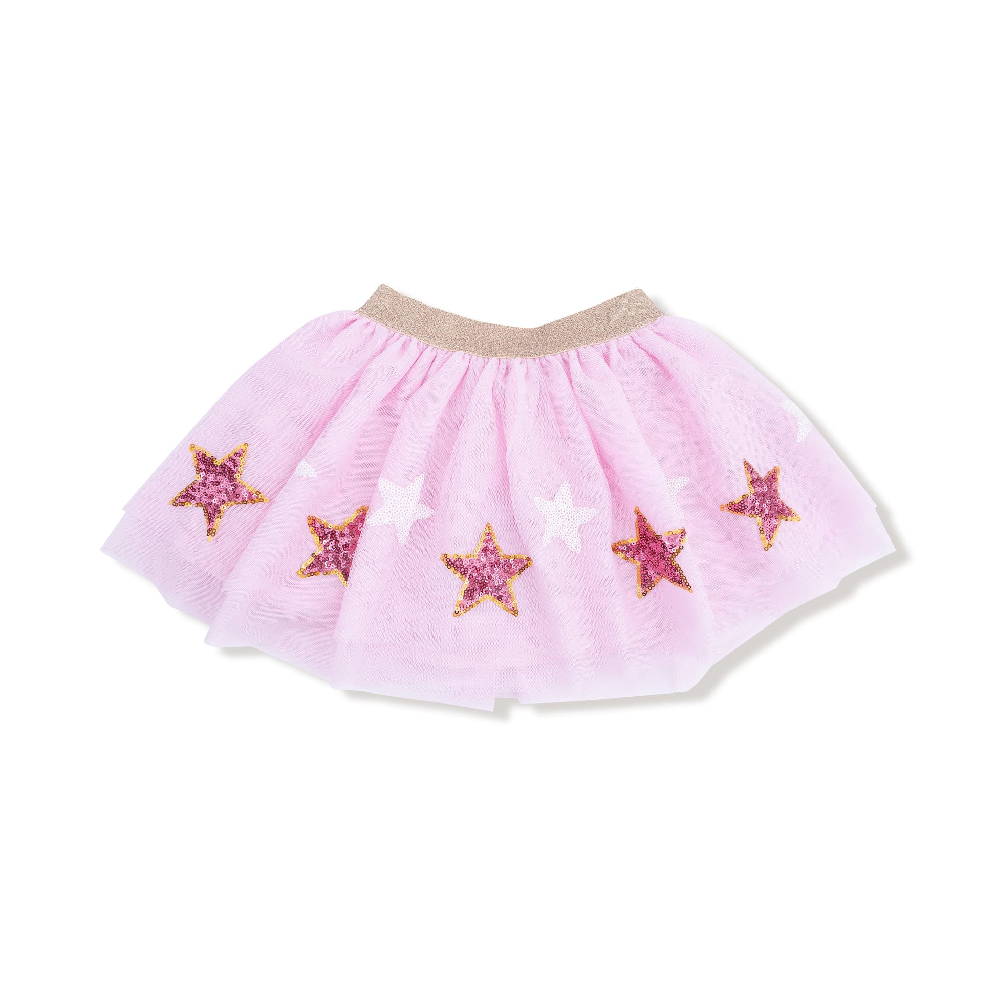 Twinkle through the Festival of Lights with our Stars Hanukkah Tutu. This dazzling skirt features layers of soft tulle sprinkled with pink and white sequin star appliques and finished with a sparkly gold waistband for a festive touch. Whether your little one is spinning the dreidel or lighting the menorah, this tutu is made for magical Hanukkah moments.