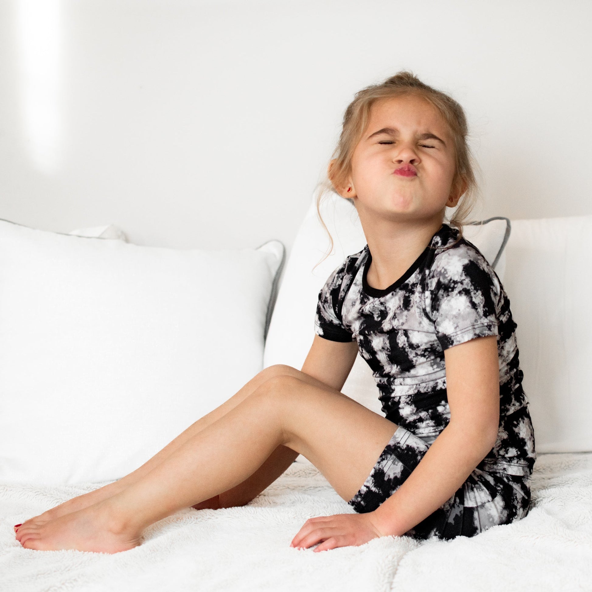 TWO PIECE SHORTIE SET- Black Tie Dye
