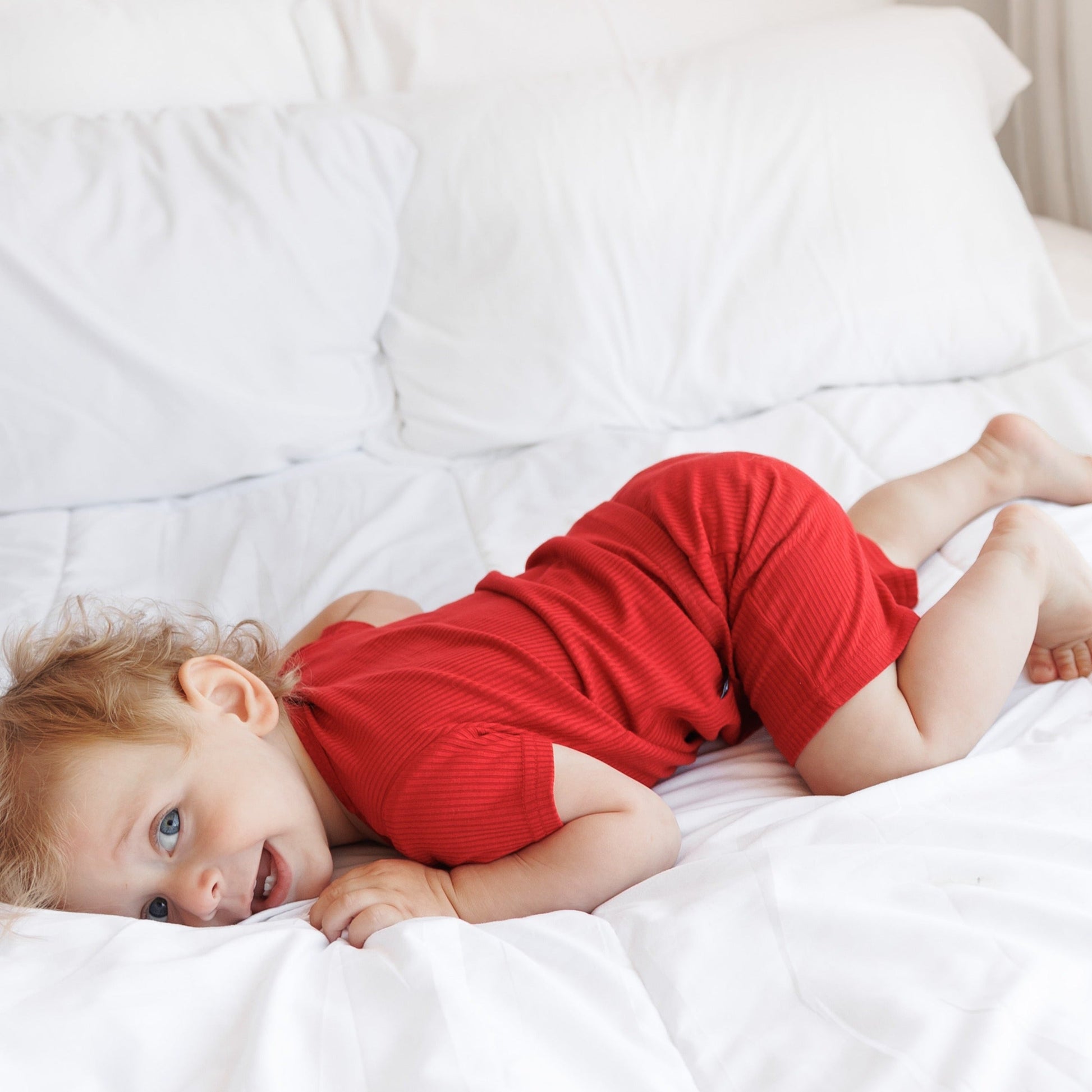 Ribbed Material: Our buttery-soft ribbed material is a customer favorite for a reason! The ribbed material allows for even more stretch - meaning these will last even longer on your growing little one. We do NOT recommend sizing up in our ribbed line!