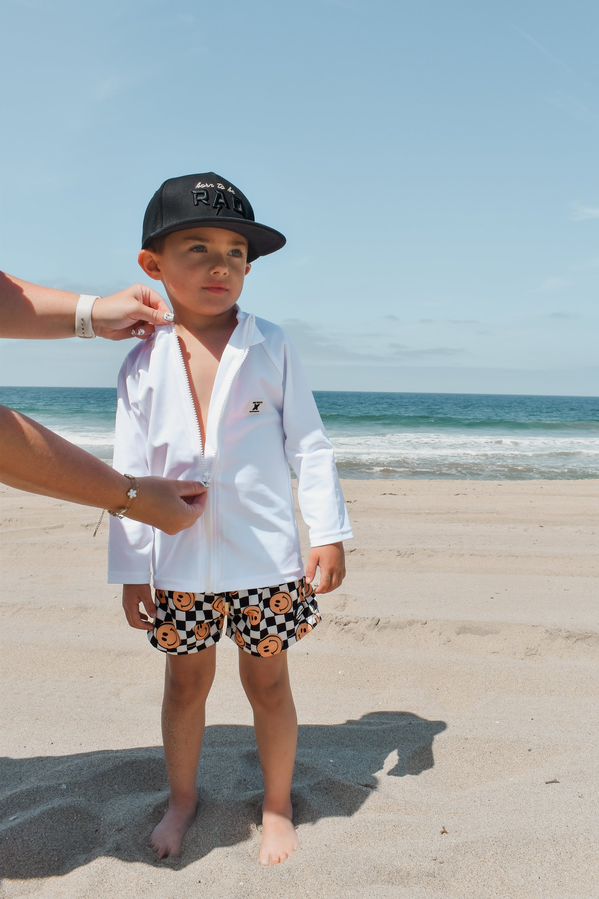 A parents favorite to keep their little ones safe from the sun during all your water activities this spring + summer! Our easy on and off FULL zipper technology makes it easy to put on and take off. Add one of our sun hats and swim shorts for extra sun protection.