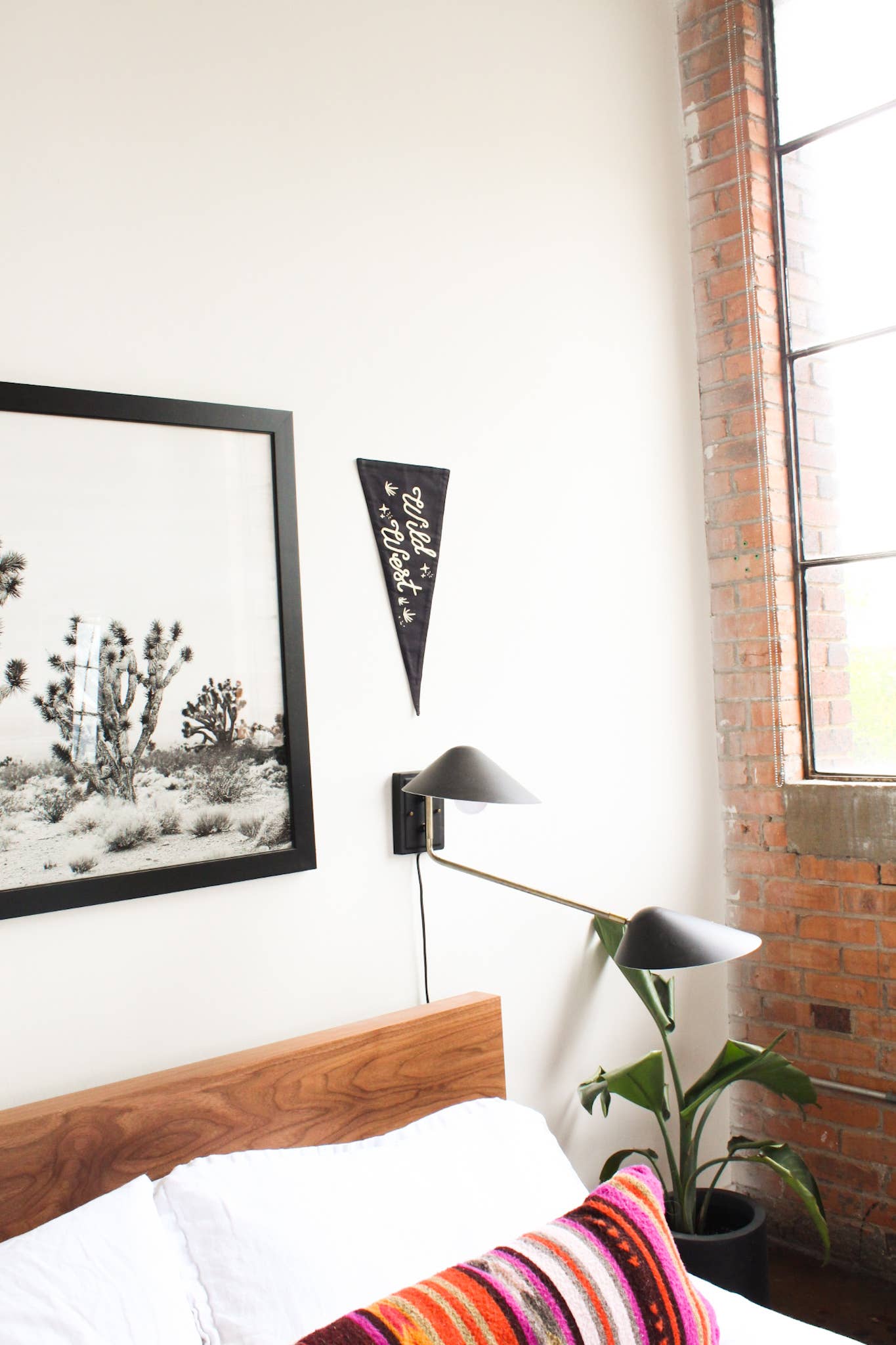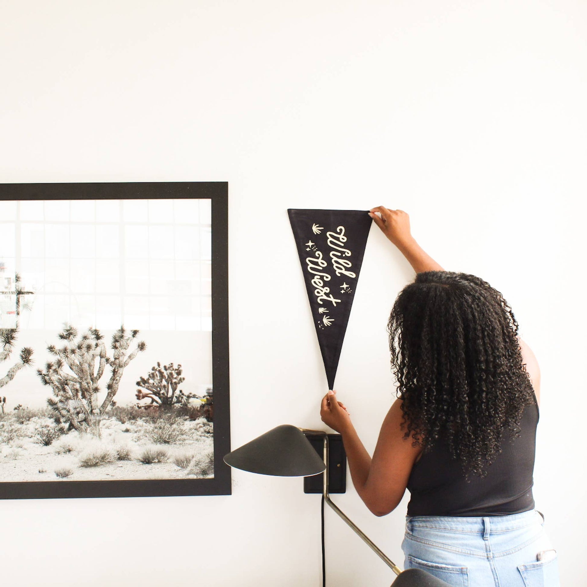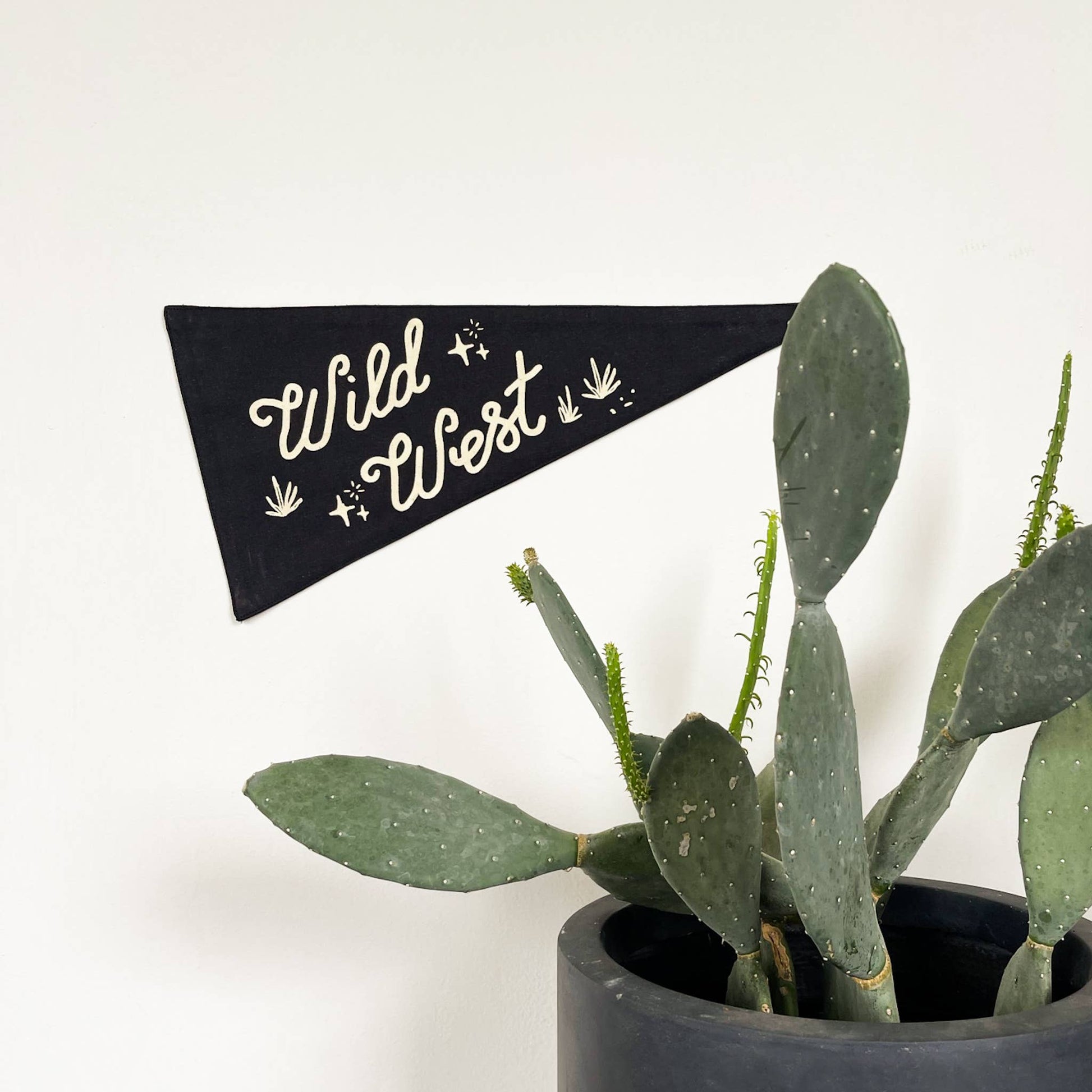 "Wild West" Off-white screen print on black, triangle canvas pennant.