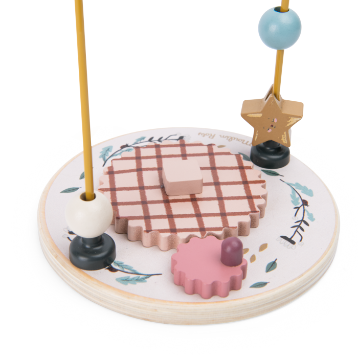 Illustrated wooden manipulative game from the After the Rain collection.Watch the cup spin and observe its character as you operate the gear set.