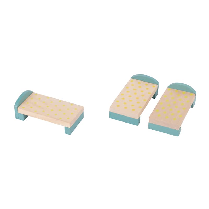 Ideal for playing and making up stories, The Big Family’s screen-printed wooden doll house and furniture, is easy to assemble.In the style of a typical village house, it comes with a kitchen where Nini the mouse prepares a hot meal, a dormitory bedroom for sleepover with friends, a bathroom, and an attic to play hide and seek.
