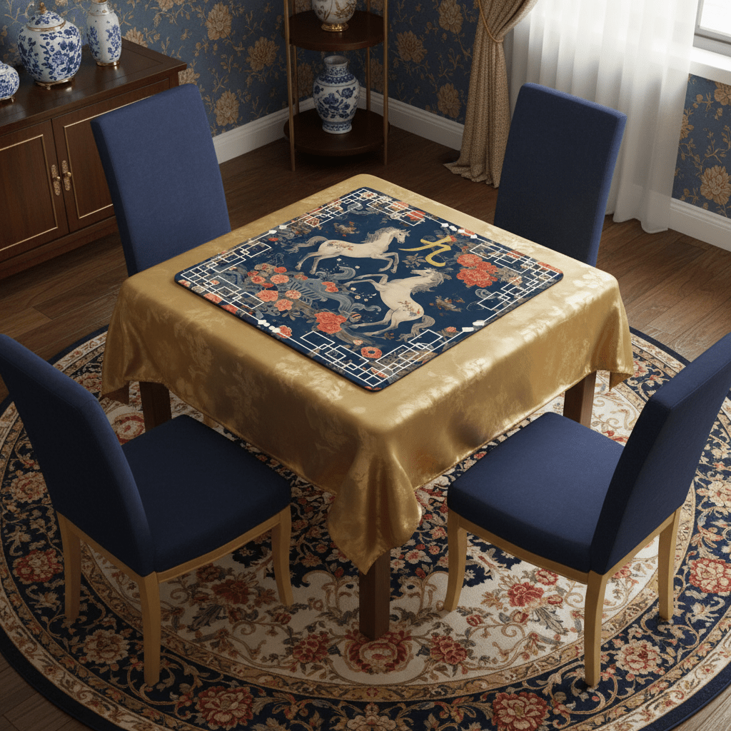 Celebrate the Year of the Fire Horse with this stunning limited edition mahjong mat! According to the Chinese zodiac, 2026 welcomes the spirited Fire Horse—a symbol of passion, energy, and bold transformation. This vibrant mat honors that fiery spirit while bringing luck to your game. I chose the number 9 for symbolic to mahjong: