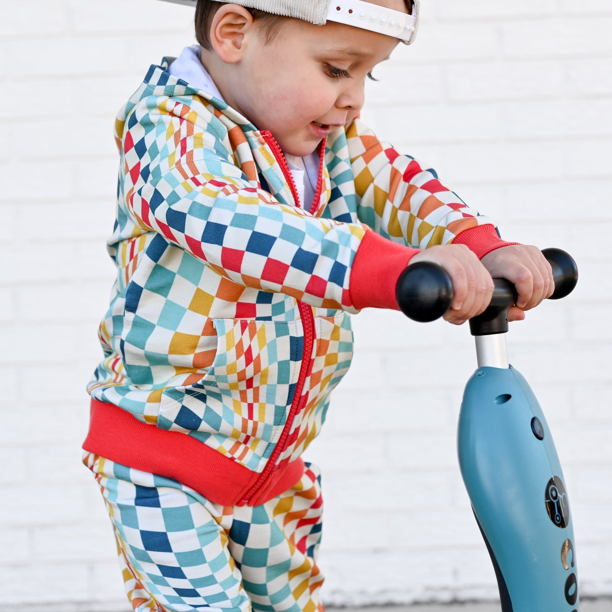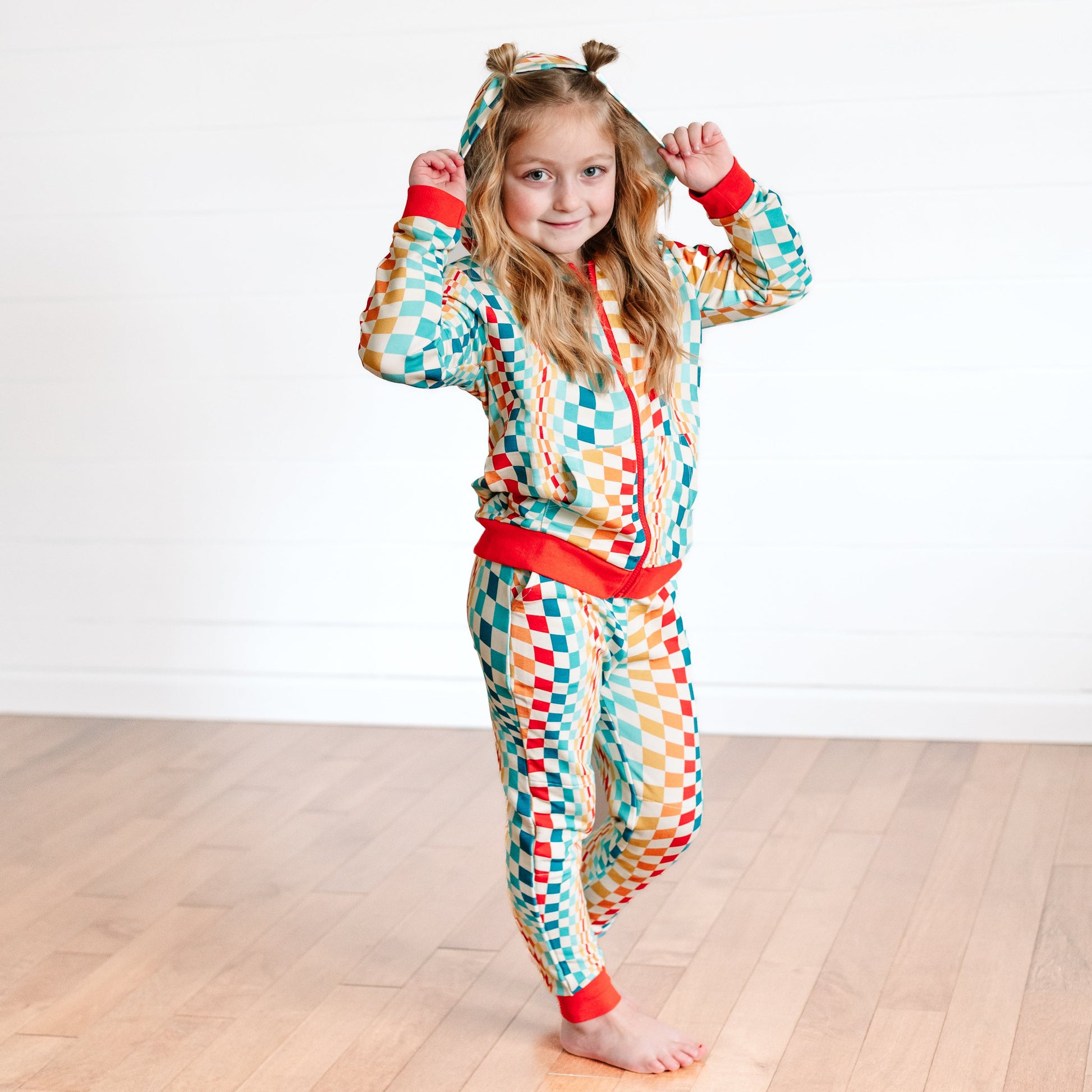 ZIP HOODIE- Groovy Check Bamboo French Terry